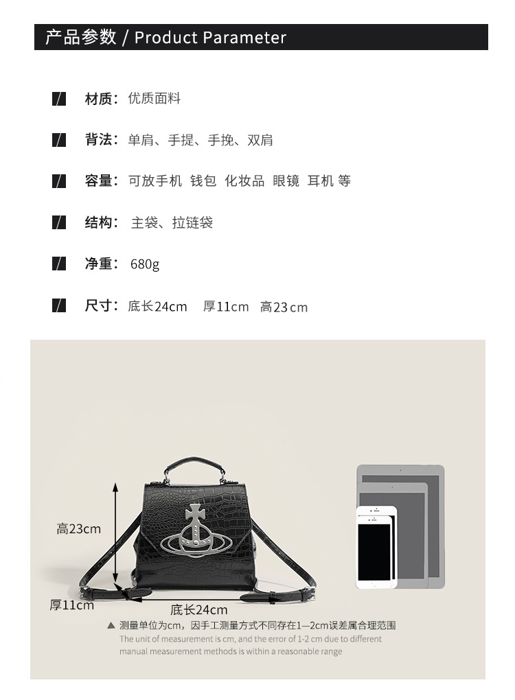 Ba lô hoa văn cá sấu Tây Thái hậu 2023 mới dung lượng lớn màu đen họa tiết thiểu số chất lượng cao Túi Saturn nữ