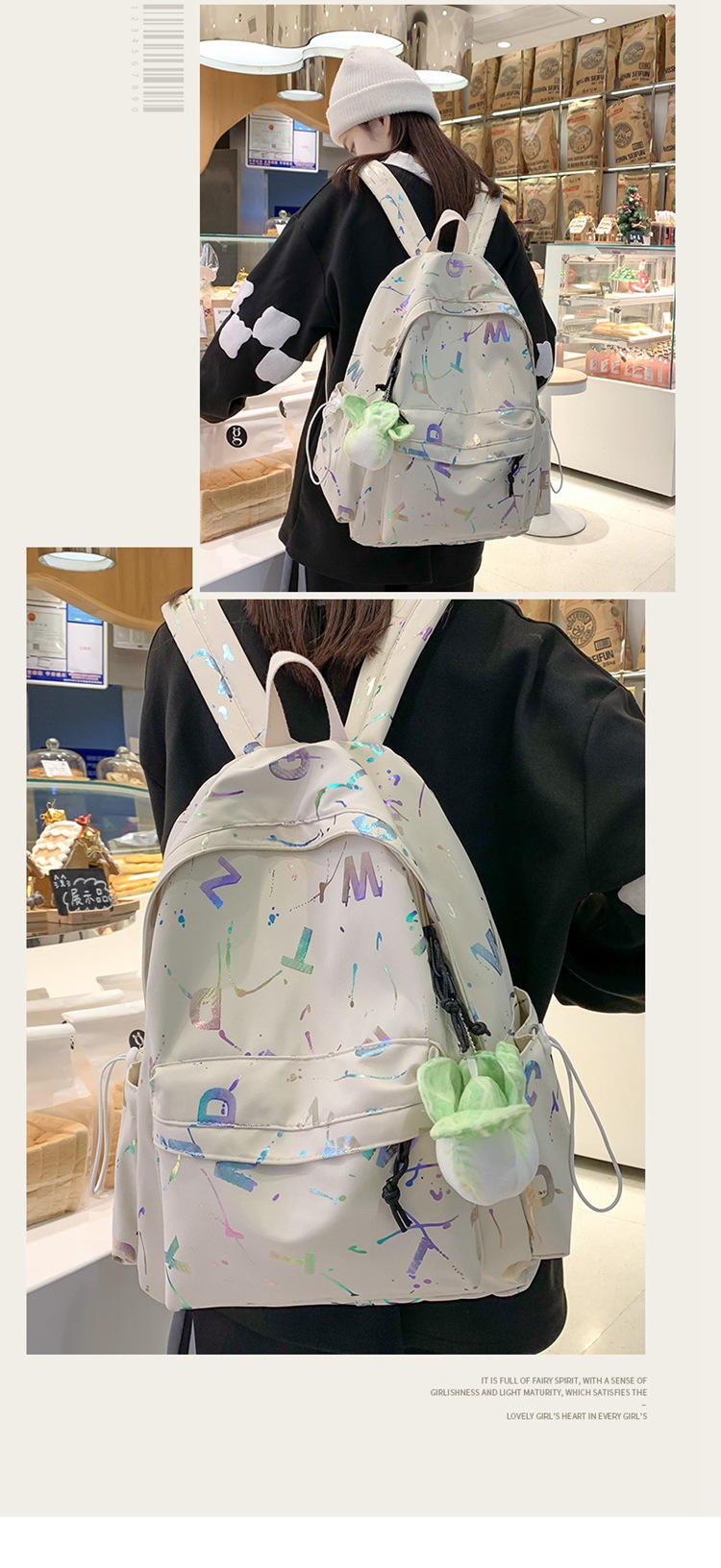 Ba lô học sinh in chữ Nhật Bản mới phù hợp với tất cả các trận đấu nhỏ tươi ba lô học sinh trung học cơ sở dễ thương đi học nữ