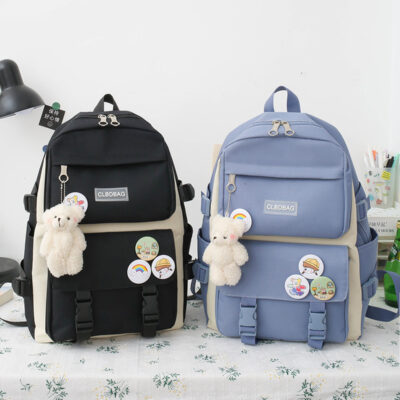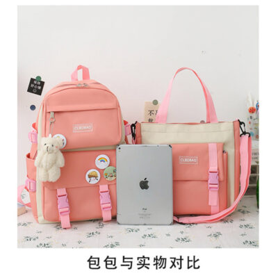 Ba lô học sinh trung học cơ sở và trung học phổ thông phiên bản Hàn Quốc của ba lô bé gái Harajuku INS màu sắc phù hợp với ba lô bốn mảnh