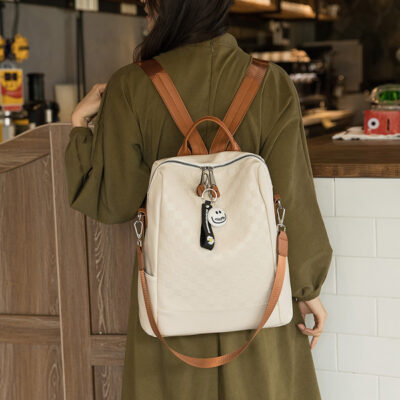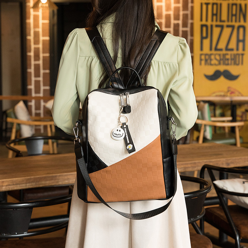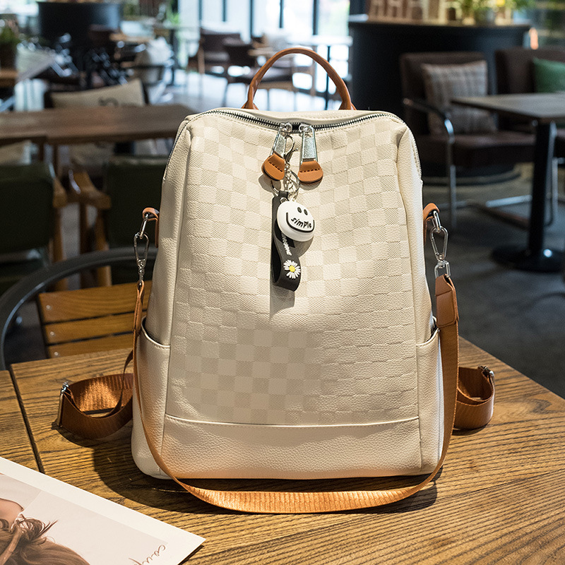 Ba lô kẻ sọc màu trắng đơn giản thời trang nữ bằng da PU sức chứa lớn dành cho nữ du lịch một vai Messenger