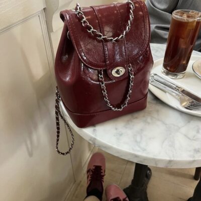 Ba lô mới của Hàn Quốc túi xách nữ da sáp dầu dây chuyền màu đỏ túi xô gió hương thơm nhỏ