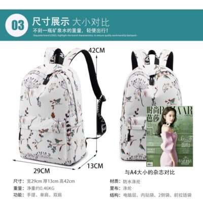 Ba lô mới xuyên biên giới nữ học sinh cấp hai Ba lô chống thấm polyester phong cách Nhật Bản và Hàn Quốc Ba lô in hệ thống rừng nhỏ trong lành