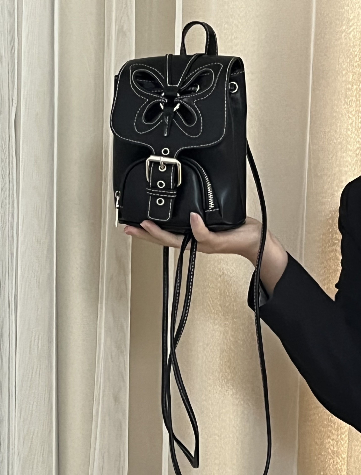 Ba lô nơ cổ điển nữ màu đen 2023 thiết kế thích hợp mới y2k mini ba lô nhỏ rỗng cho nữ
