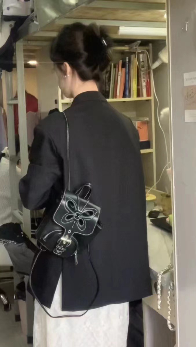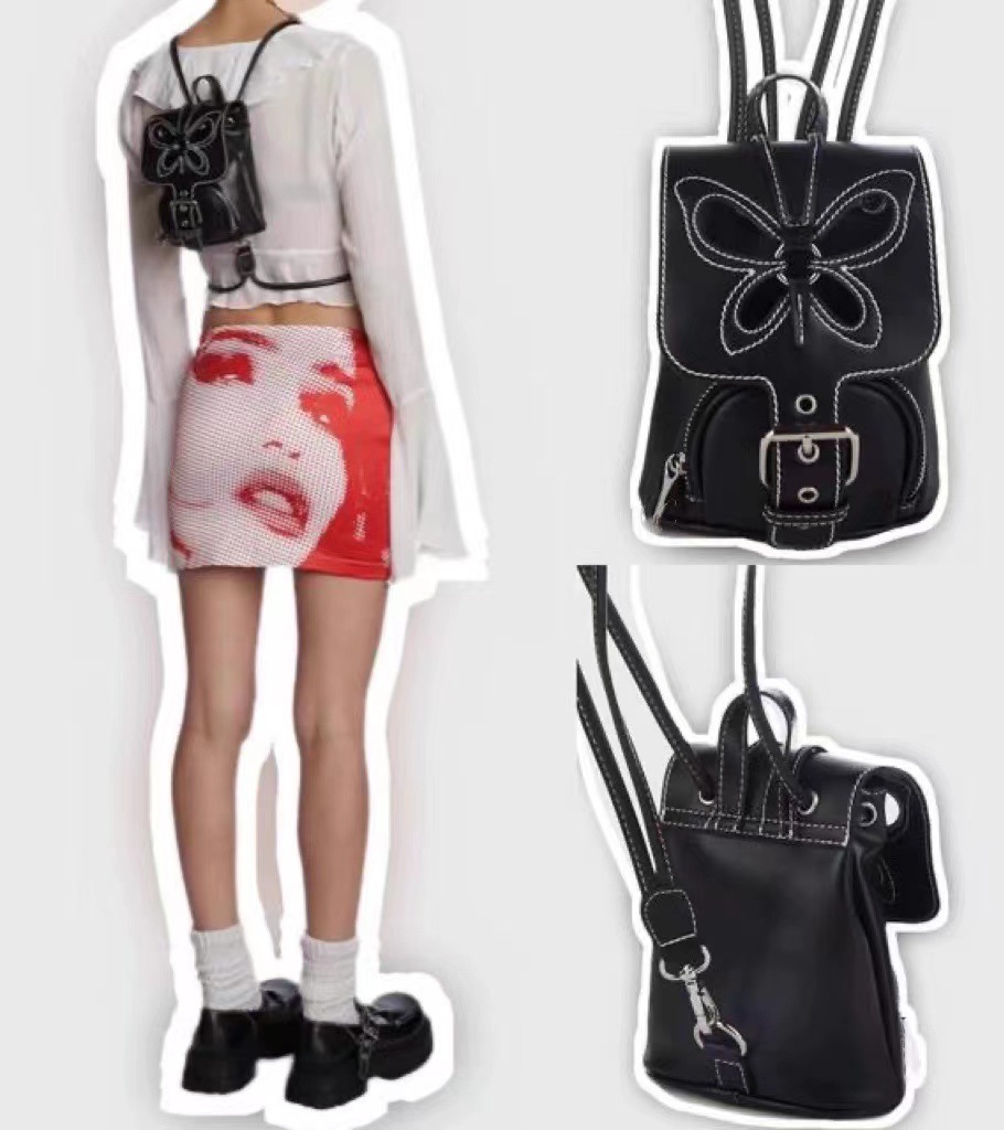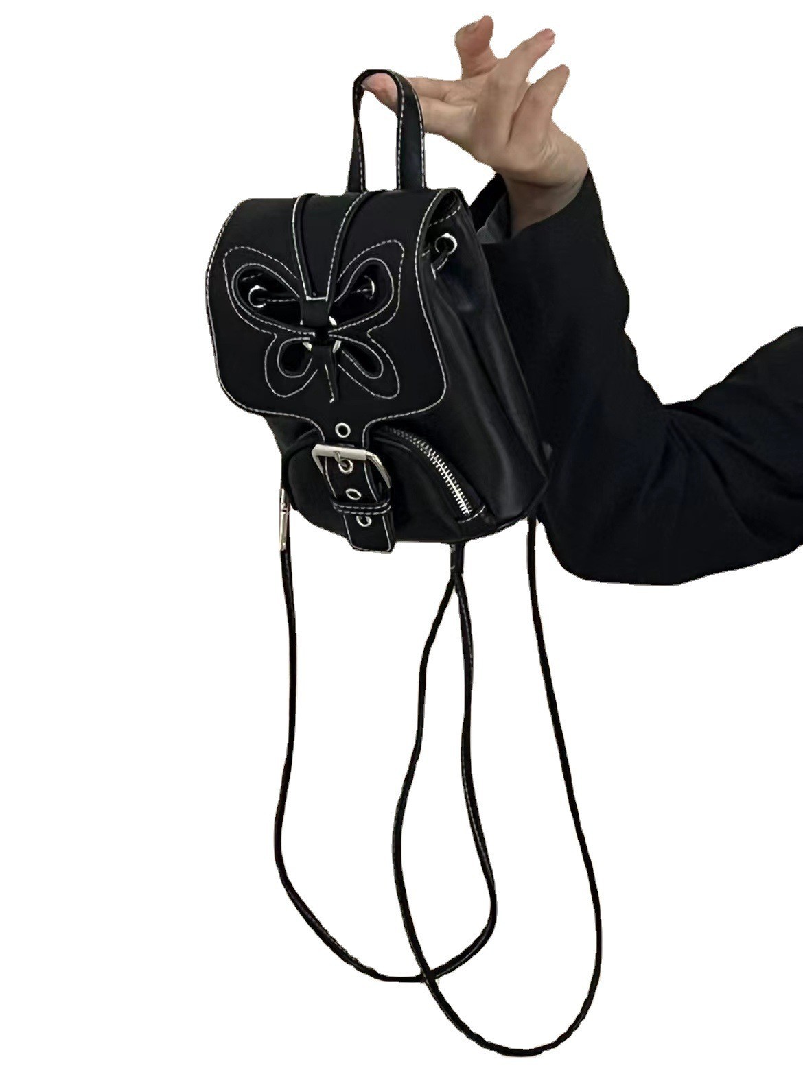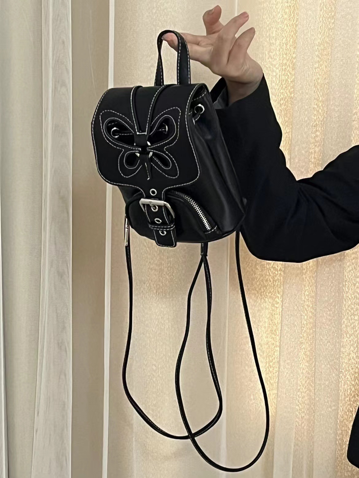 Ba lô nơ cổ điển nữ màu đen 2023 thiết kế thích hợp mới y2k mini ba lô nhỏ rỗng cho nữ