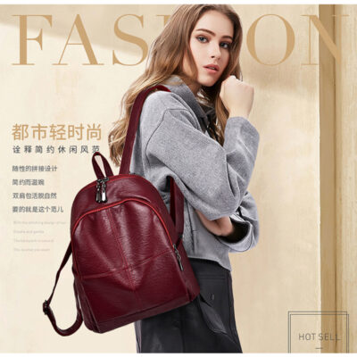 Ba Lô Nữ Cho Nữ 2023 Mới Rửa Sạch Da Cừu Ba Lô Lưới Nữ Da Đỏ Siêu Nhẹ Giải Trí Cặp Đi Học