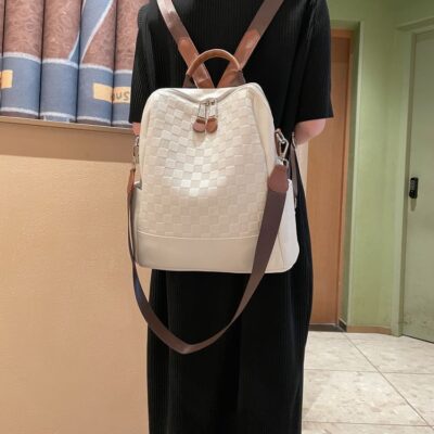 Ba lô nữ da thật kẻ caro 2023 xu hướng thời trang cao cấp mới ba lô nữ thường ngày đi học phù hợp tất cả