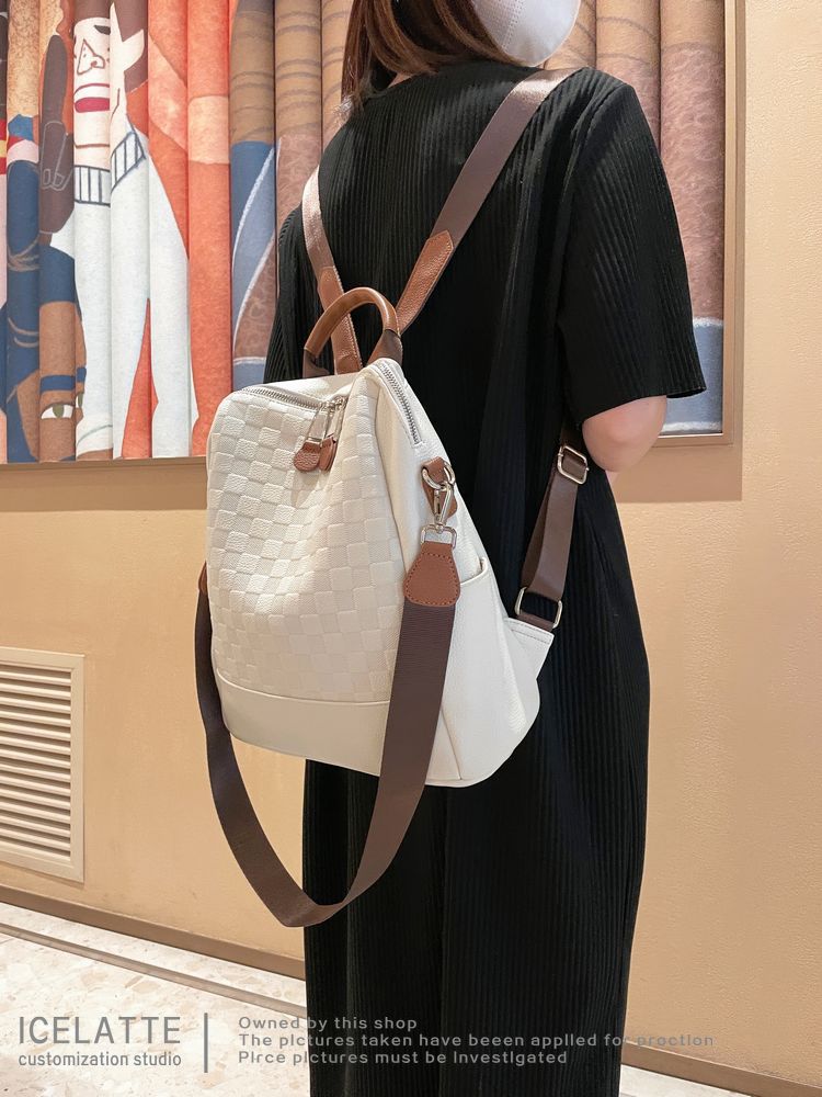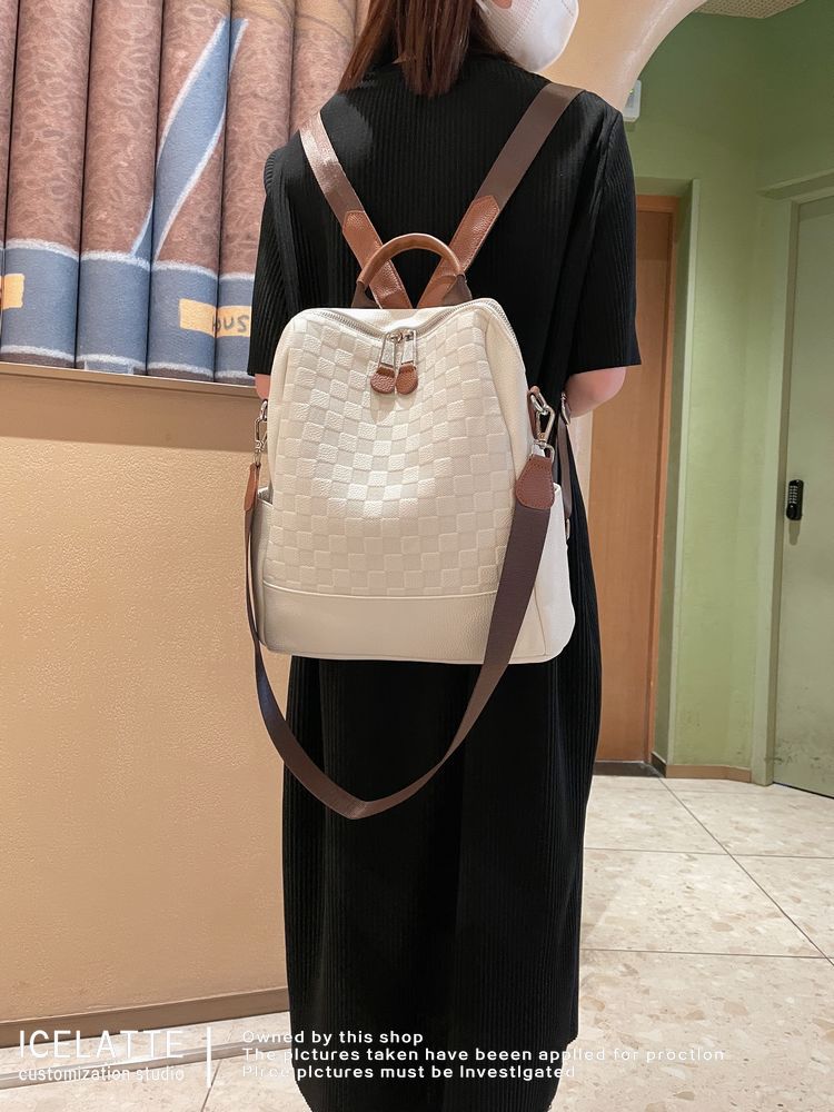 Ba lô nữ da thật kẻ caro 2023 xu hướng thời trang cao cấp mới ba lô nữ thường ngày đi học phù hợp tất cả