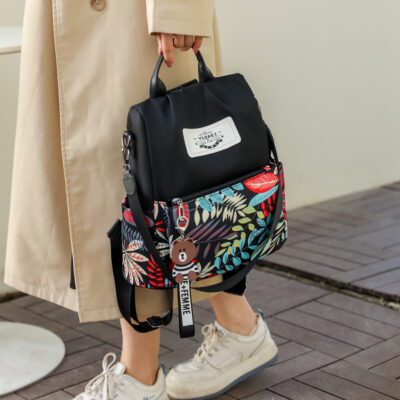Ba lô xuyên biên giới túi xách nữ 2023 mới thời trang đơn giản in hình phong cách cổ điển dung lượng lớn ba lô công dụng kép