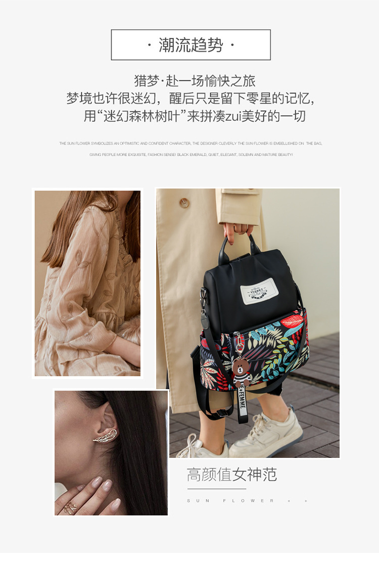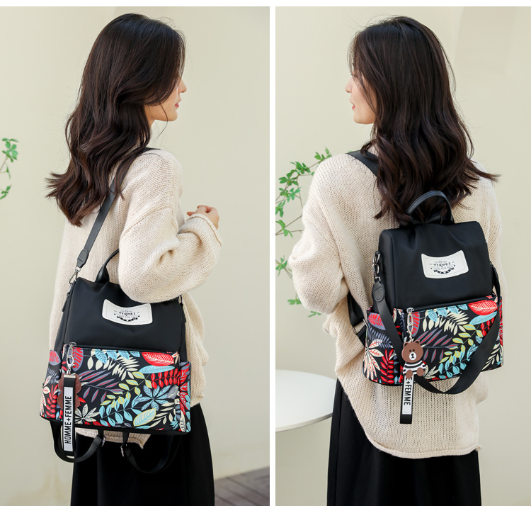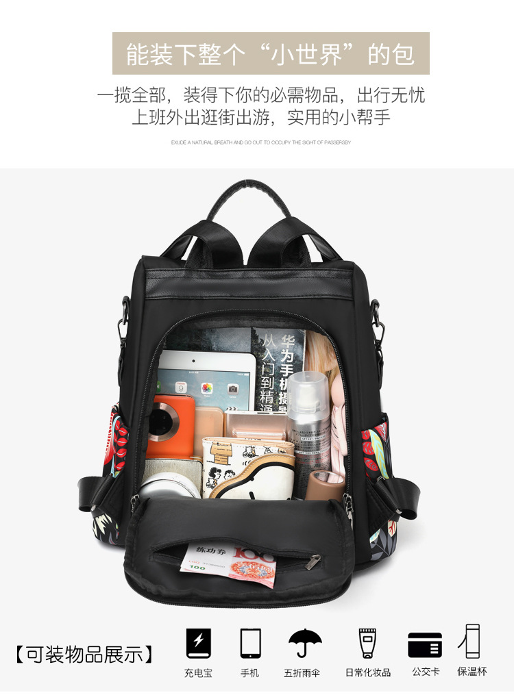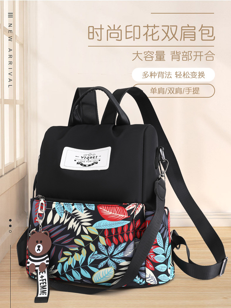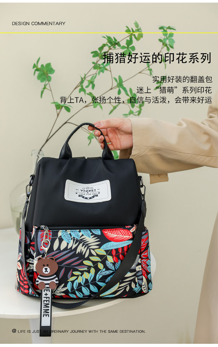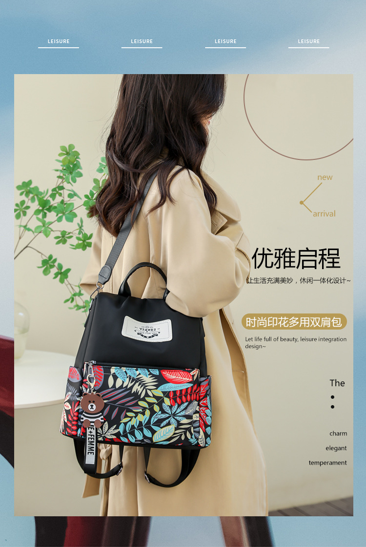 Ba lô xuyên biên giới túi xách nữ 2023 mới thời trang đơn giản in hình phong cách cổ điển dung lượng lớn ba lô công dụng kép