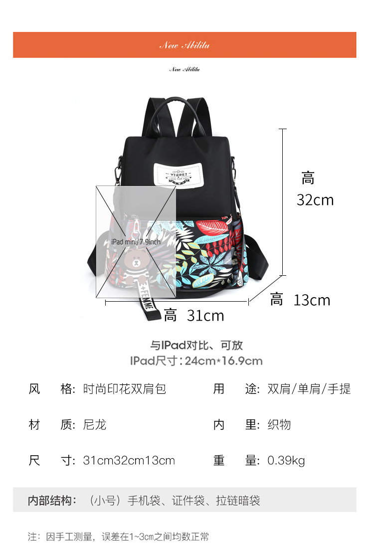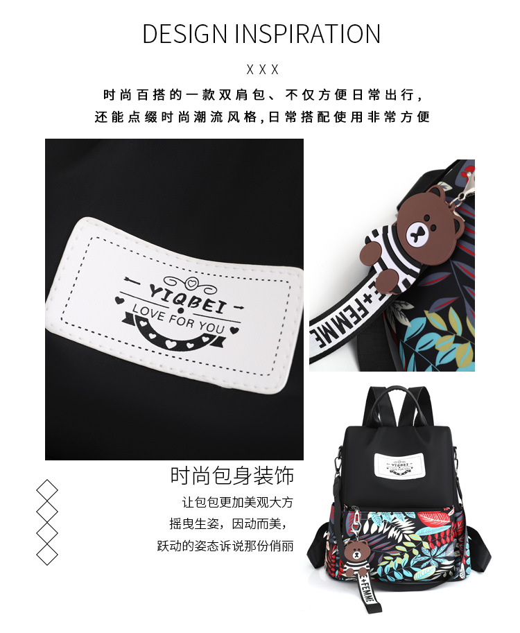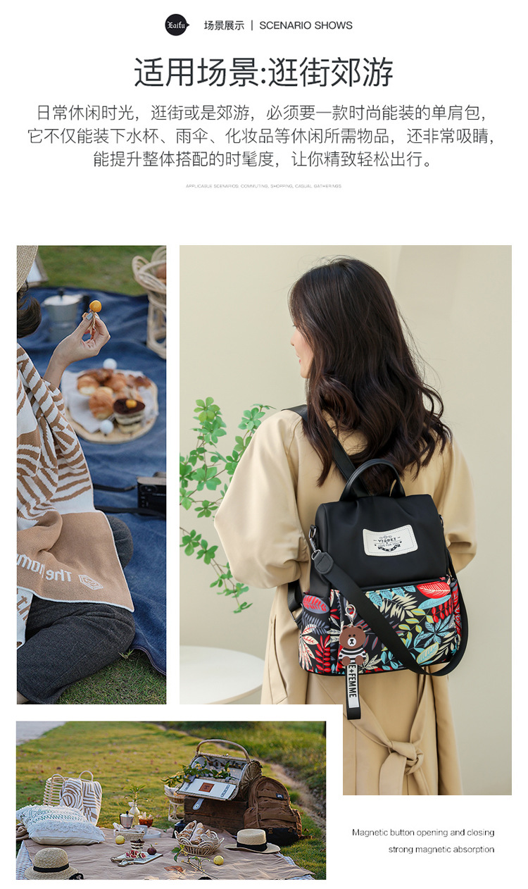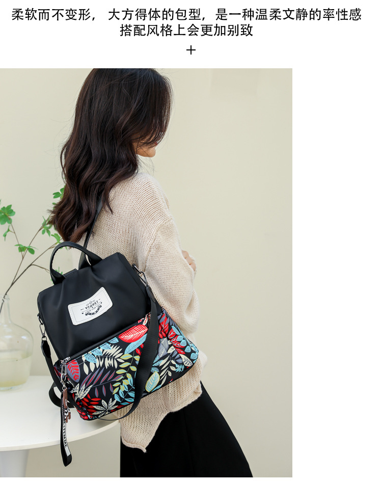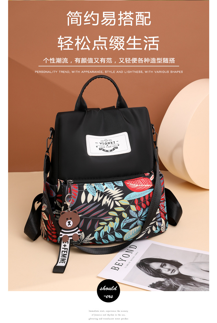 Ba lô xuyên biên giới túi xách nữ 2023 mới thời trang đơn giản in hình phong cách cổ điển dung lượng lớn ba lô công dụng kép