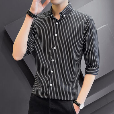Ba phần tư tay Áo Sơ Mi Nam Mùa Hè Mới Sọc Dọc Công Sở Size Lớn Trên Với Thanh Niên Tay Ngắn