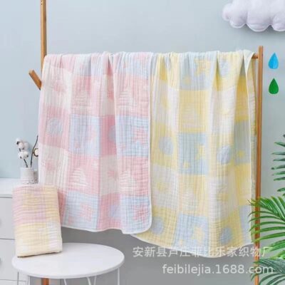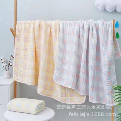 Baby home dệt seersucker khăn tắm bằng tre sợi cotton mật độ cao chăn em bé siêu mềm bán buôn gạc sáu lớp chăn em bé