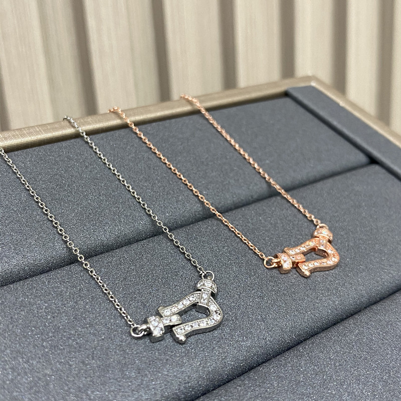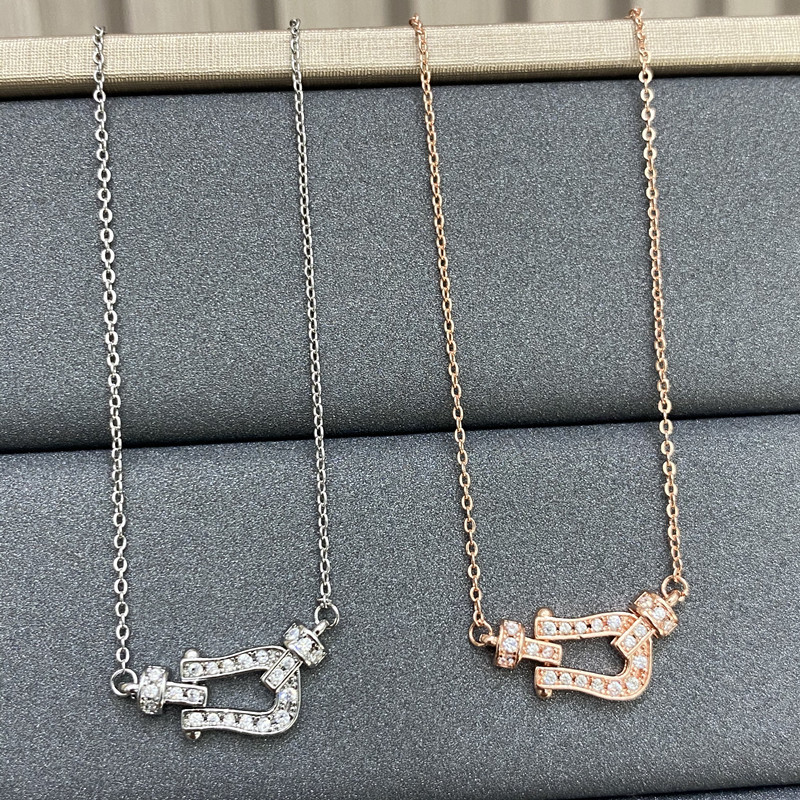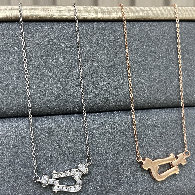 Bạc 925 ánh sáng sang trọng móng ngựa khóa vòng cổ nữ thiểu số thiết kế cảm giác vàng trắng sâm panh vàng xương đòn dây chuyền ins triều