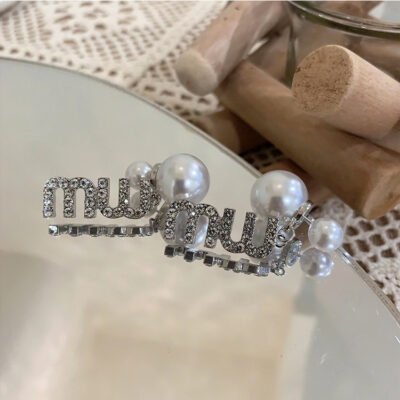 Bạc 925 Kim Tính Khí Chữ MM Bông Tai Đính Đá Thời Trang Ngọc Trai Đa Năng Mặt Trước Và Sau Đeo Tai Kim Bông Tai Cá Tính Nữ