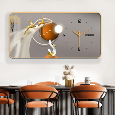 Bắc Âu ánh sáng sang trọng trang trí đồng hồ tranh đồng hồ treo phòng khách tối giản hiện đại đồng hồ bầu không khí thời trang gia đình lưới màu đỏ treo tranh đồng hồ