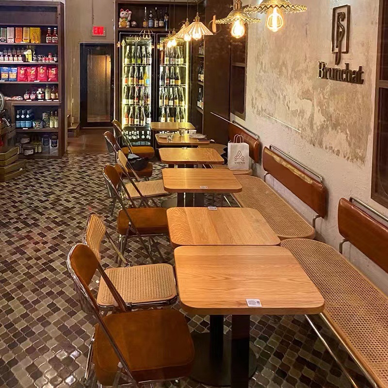 Bắc Âu Bàn Ăn Gỗ Chắc Chắn Bàn Vuông Quán Trà Sữa Cafe Bàn Ghế Cửa Hàng Kẹo Ăn Thanh Nhà Hàng Bình Thường Bàn Ăn Kết Hợp