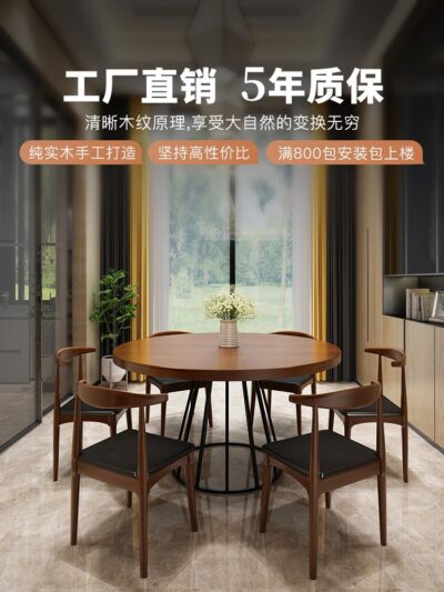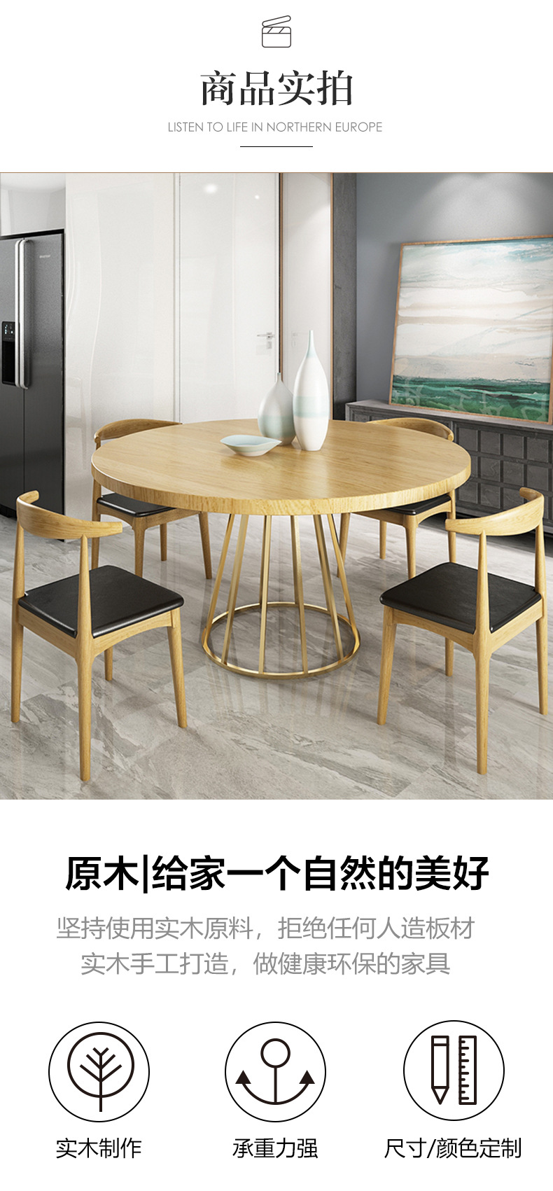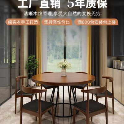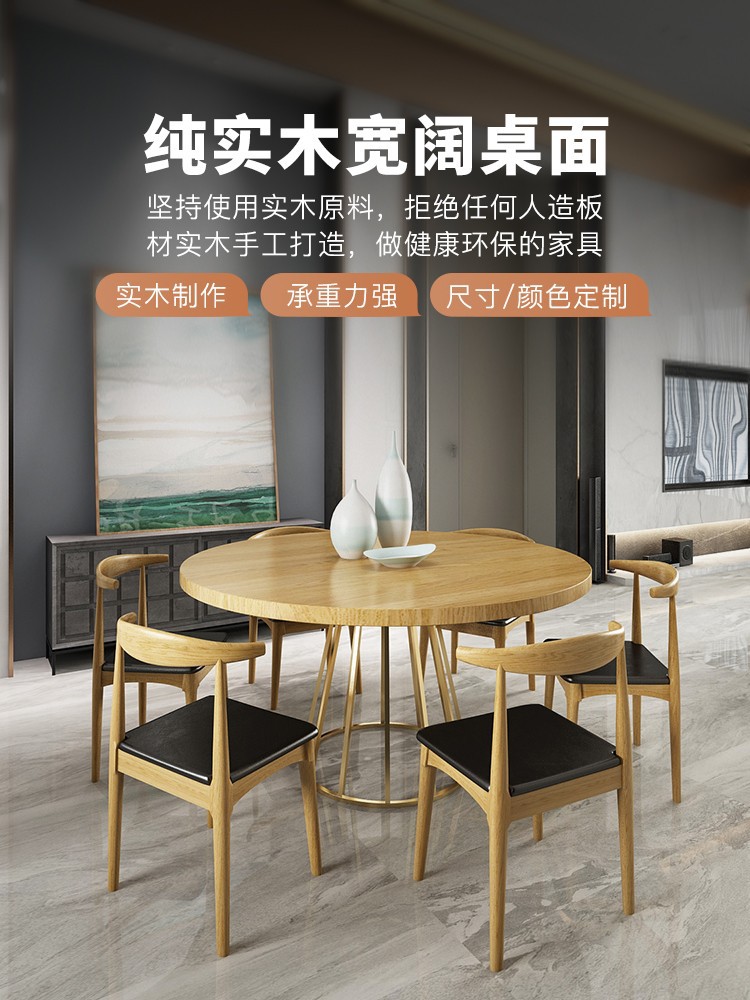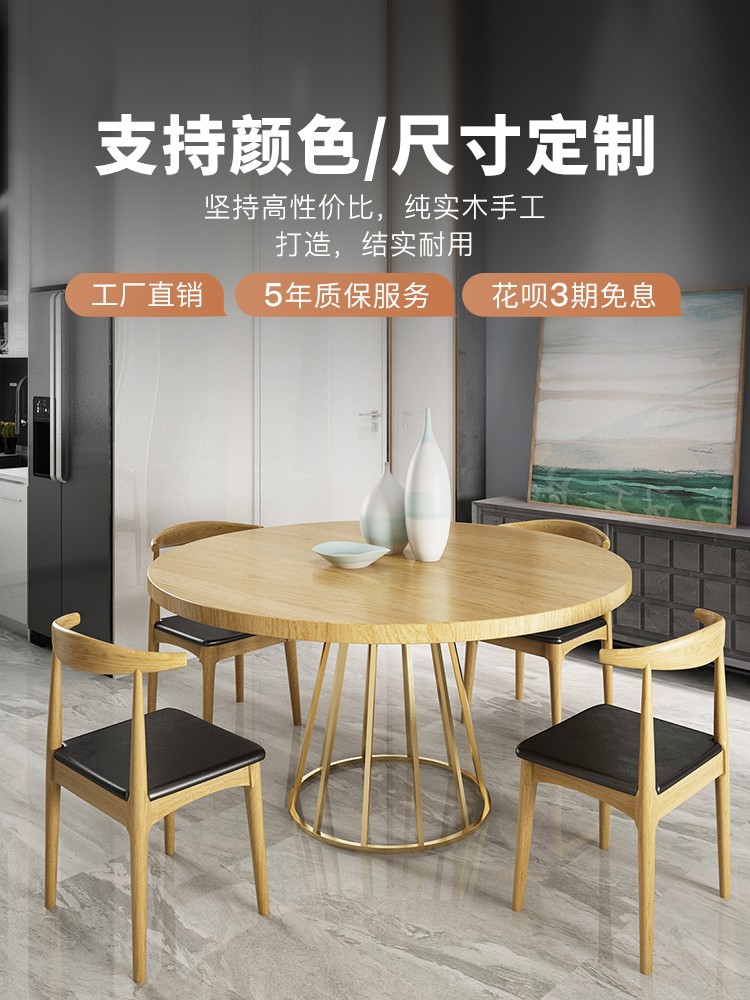 Bắc Âu bàn ghế ăn gỗ đặc phòng khách nhà tròn gia đình bàn tròn hiện đại tối giản ánh sáng sang trọng bàn ăn sắt nghệ thuật – Bàn ăn nhập khẩu cao cấp