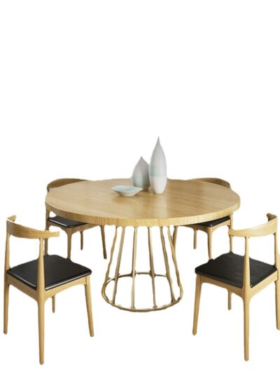 Bắc Âu bàn ghế ăn gỗ đặc phòng khách nhà tròn gia đình bàn tròn hiện đại tối giản ánh sáng sang trọng bàn ăn sắt nghệ thuật là sản phẩm nổi bật trong dòng bàn ăn nhập khẩu, thiết kế hiện đại và sang trọng, phù hợp với nhiều không gian nội thất cao cấp.