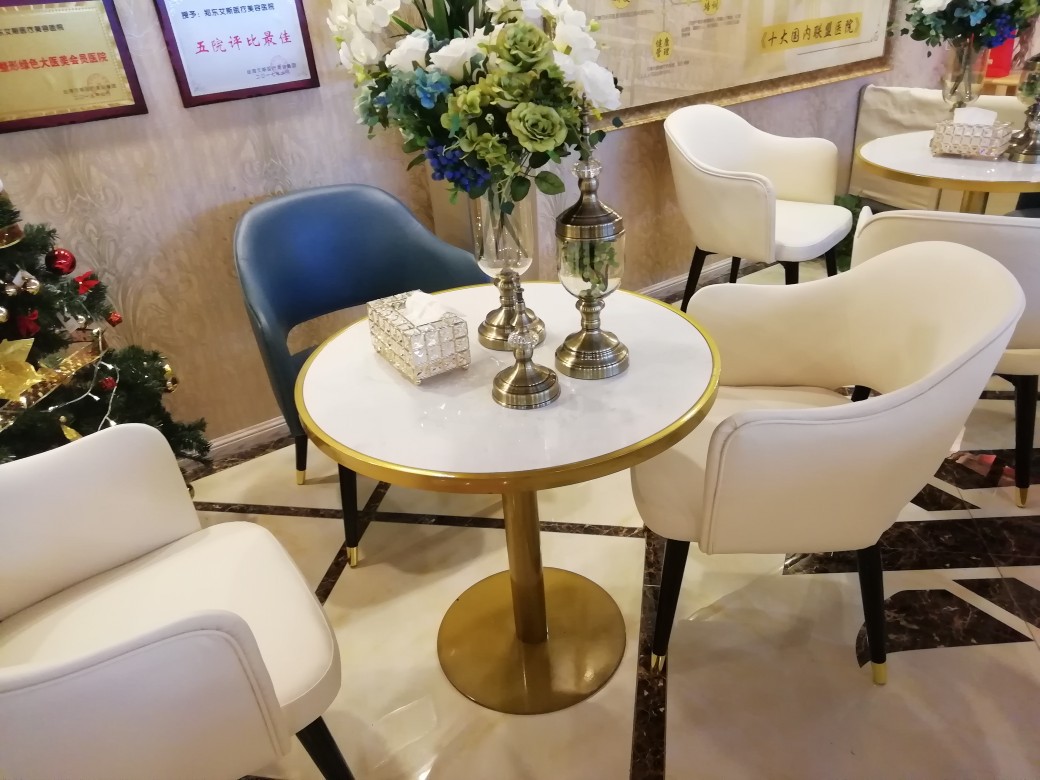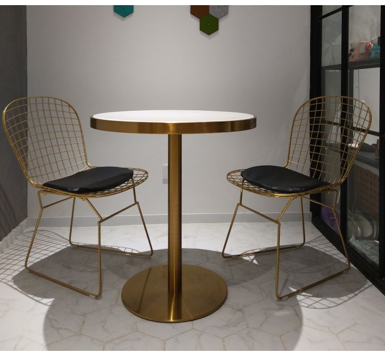 Bắc Âu bàn tròn nhỏ bàn đàm phán sắt rèn đá cẩm thạch bàn ghế quán cà phê quán trà sữa tối giản hiện đại bàn phụ bàn cà phê
