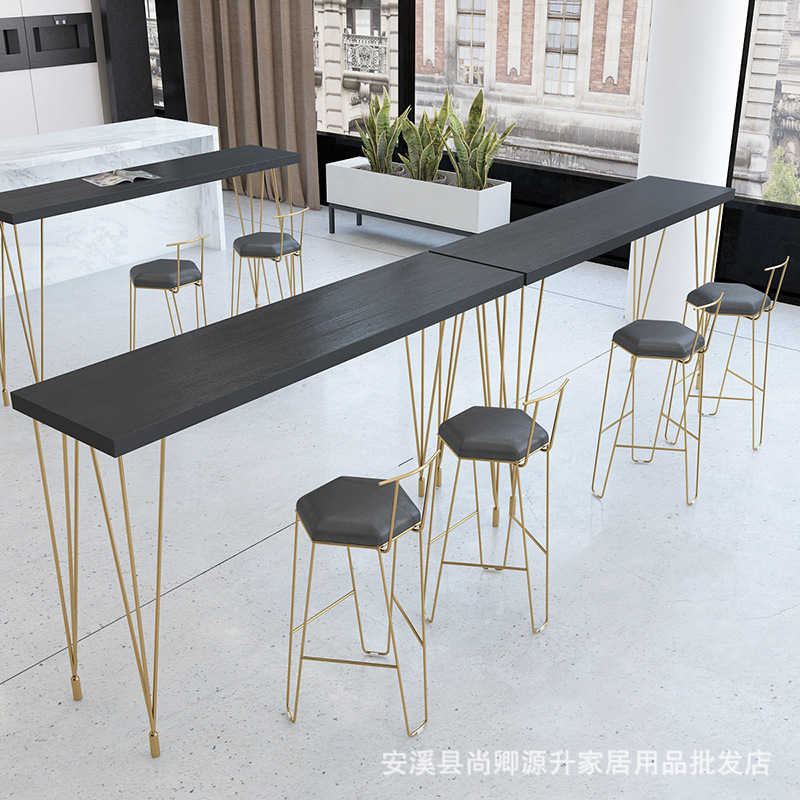 Bắc Âu Cửa Hàng Món Tráng Miệng Cafe Quầy Bar Bàn Ghế Hộ Gia Đình Đơn Giản Hiện Đại Cao Sắt Rèn Gỗ Chắc Chắn Bàn Ghế Dựa Vào Tường