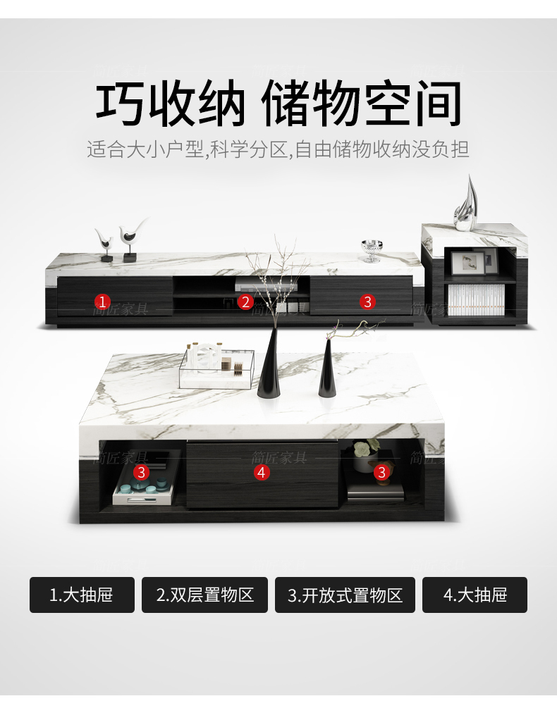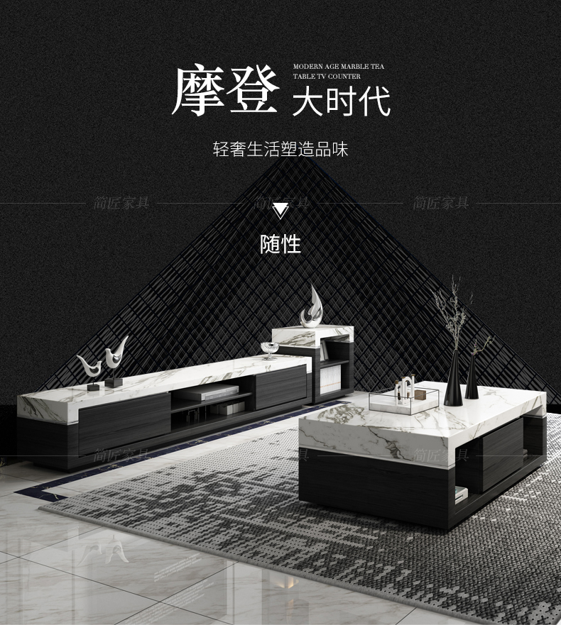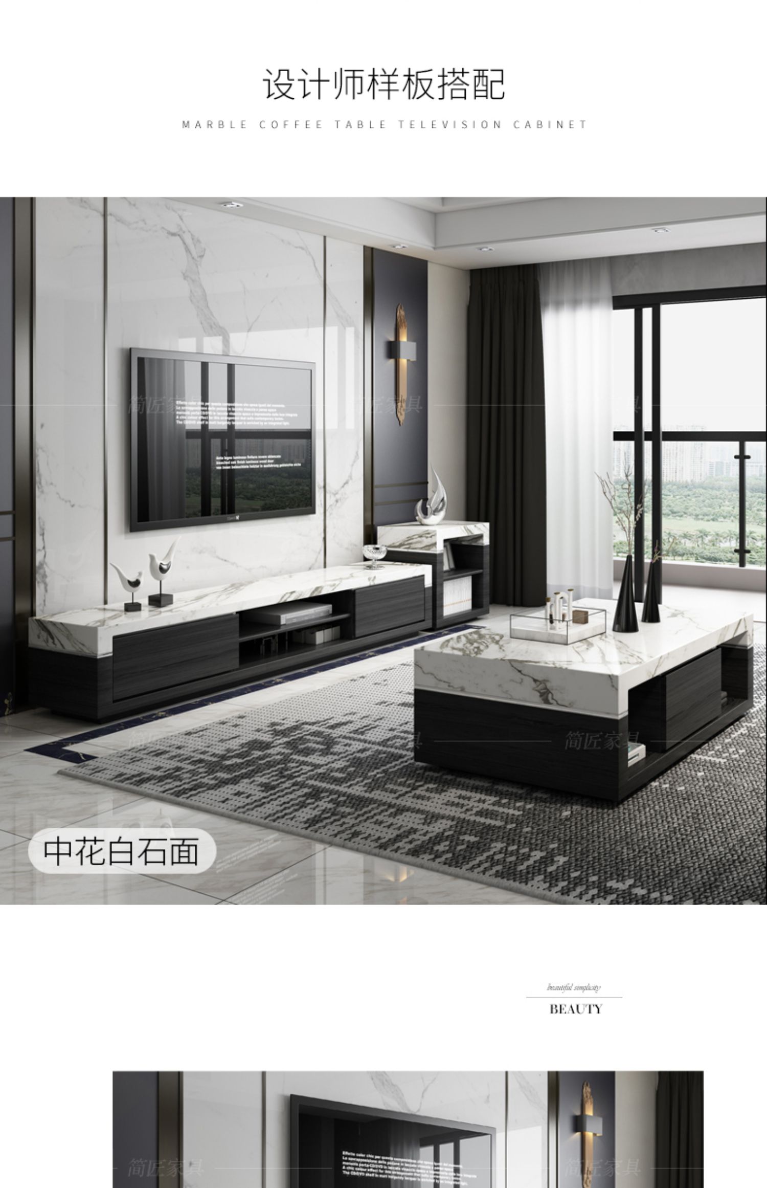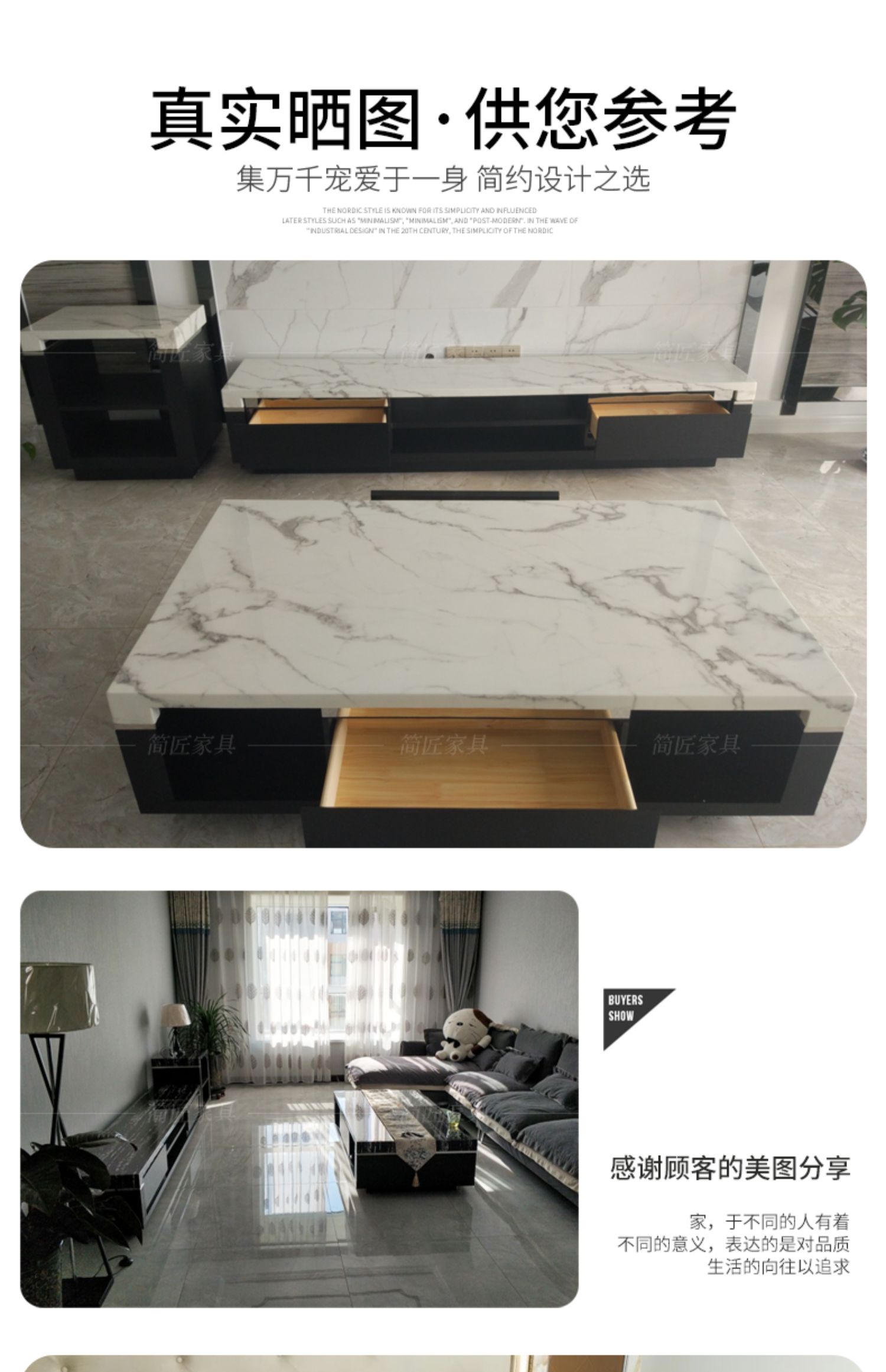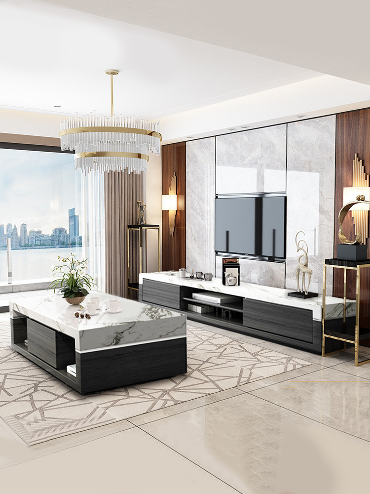 Bắc Âu Đá Cẩm Thạch Bàn Tủ Tivi Kết Hợp Ánh Sáng Phòng Khách Cao Cấp Nhà Hiện Đại Vuông Đơn Giản Tầng Tủ Bộ Hoàn Chỉnh