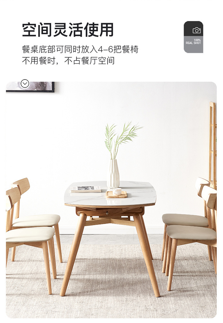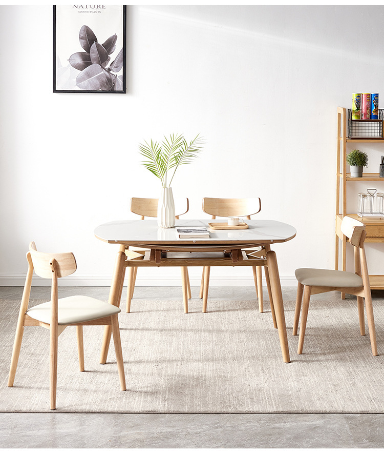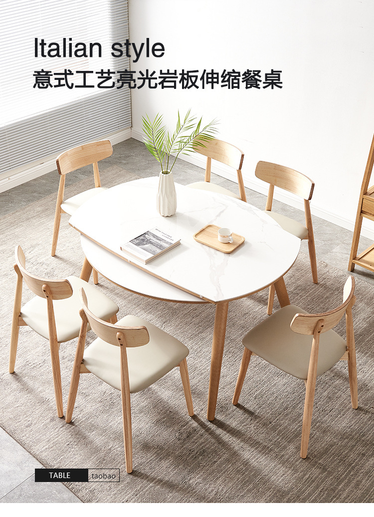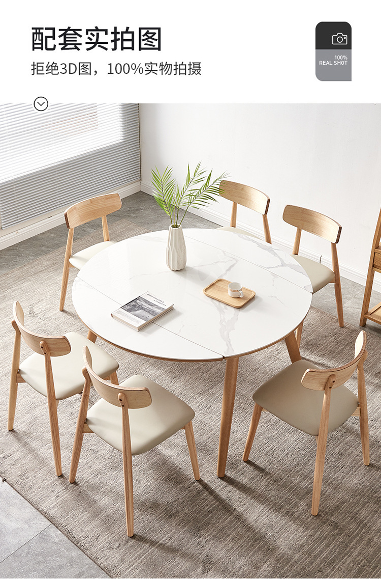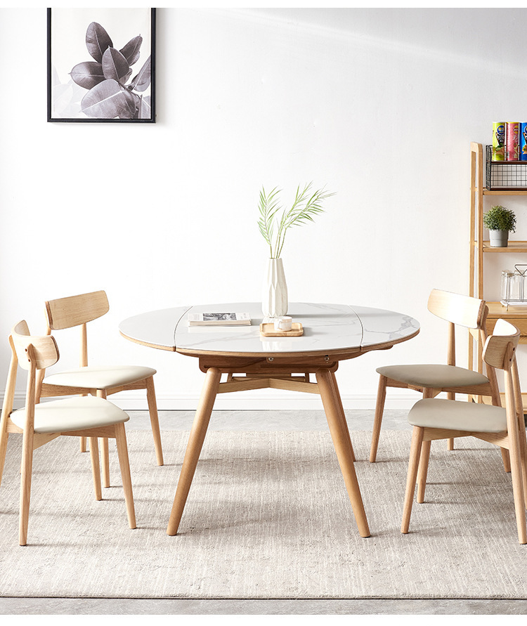 Bắc Âu Đá Tấm Gấp Bàn Ăn Gỗ Chắc Chắn Sáng Đèn Gia Đình Bàn Ăn Hiện Đại Đa Năng gia đình kính Biến Bàn Tròn – Bàn ăn nhập khẩu cao cấp