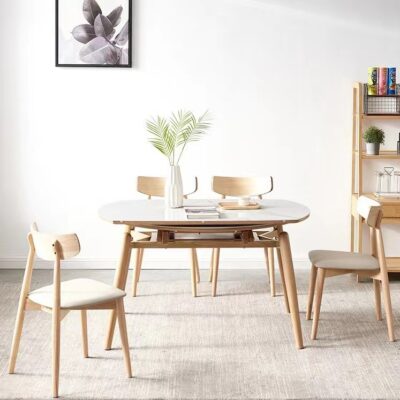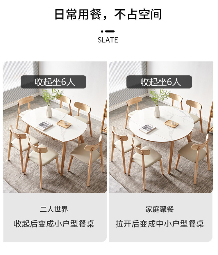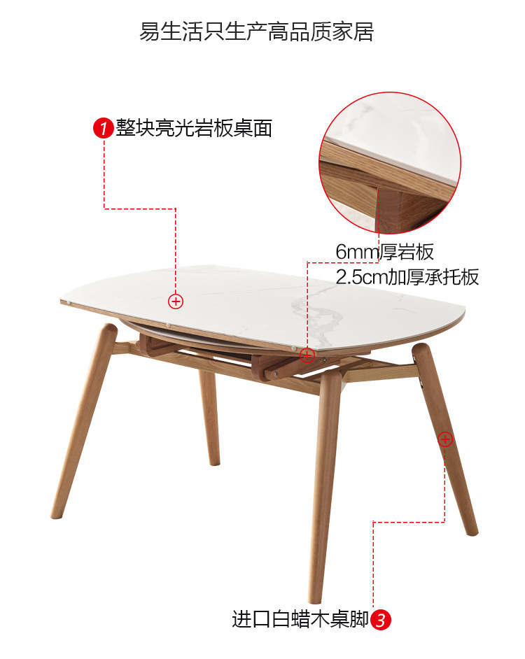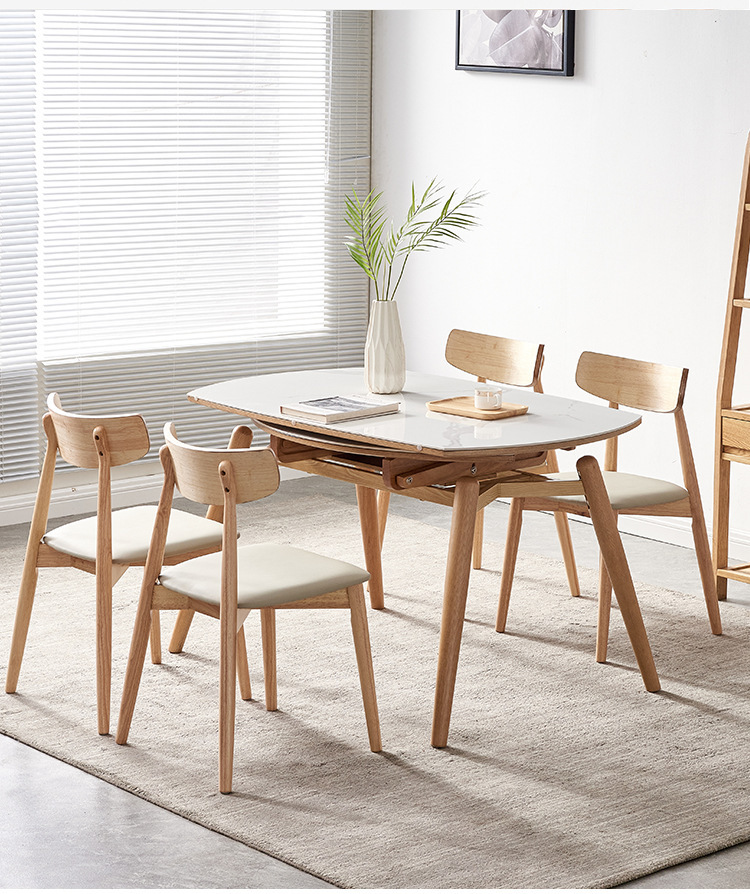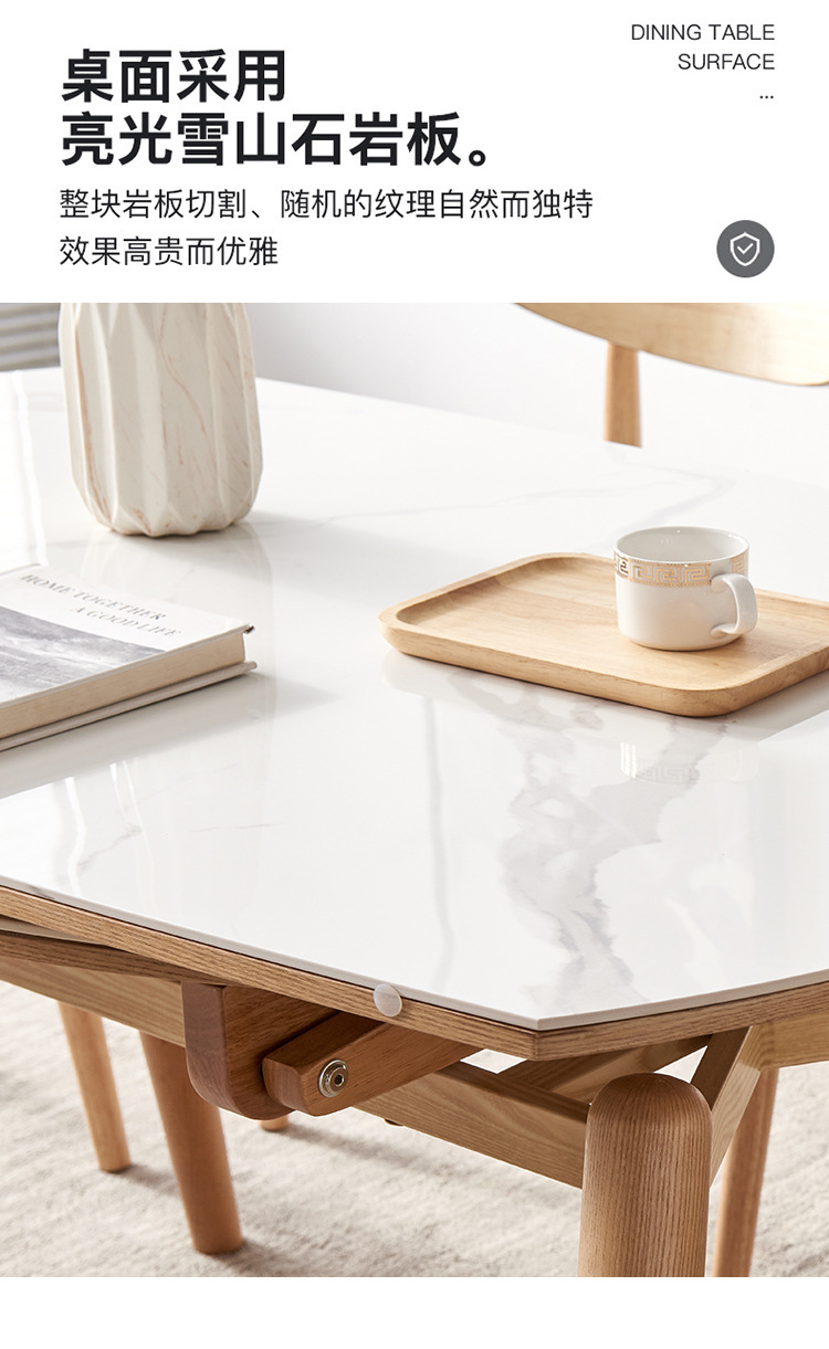 Bắc Âu Đá Tấm Gấp Bàn Ăn Gỗ Chắc Chắn Sáng Đèn Gia Đình Bàn Ăn Hiện Đại Đa Năng gia đình kính Biến Bàn Tròn – Bàn ăn nhập khẩu cao cấp