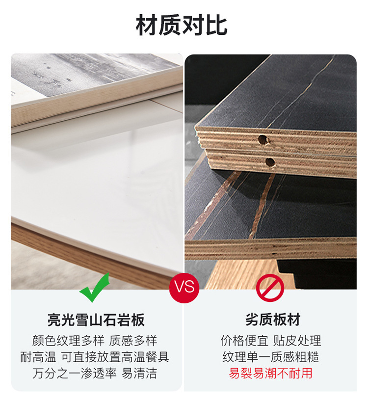 Bắc Âu Đá Tấm Gấp Bàn Ăn Gỗ Chắc Chắn Sáng Đèn Gia Đình Bàn Ăn Hiện Đại Đa Năng gia đình kính Biến Bàn Tròn
