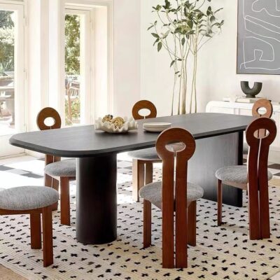 Bắc Âu Đen Đơn Giản Gỗ Chắc Chắn Bàn Ăn Hộ Gia Đình Nhỏ Retro Khúc Gỗ Bàn Ăn Wabi Sabi Phong Cách Bàn Đàm Phán Bàn