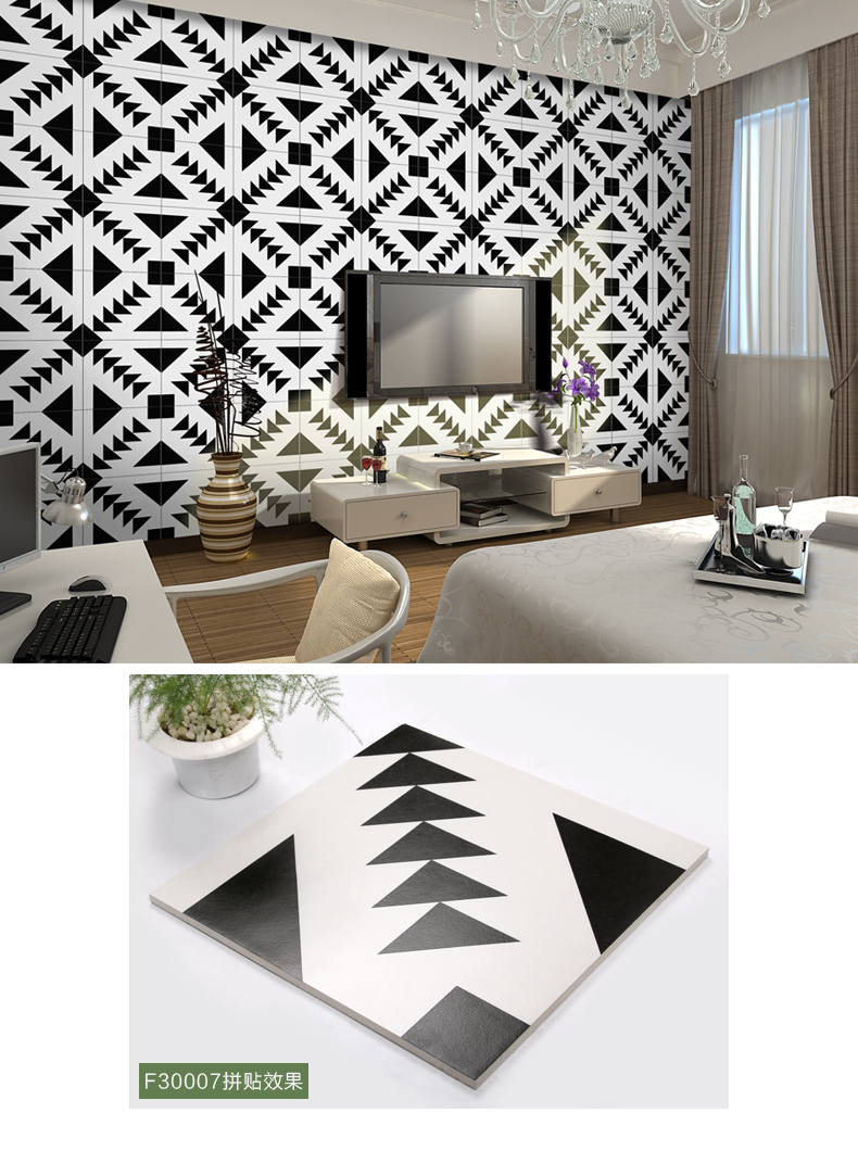 Bắc Âu Đen Trắng Hình Học Gạch 300X300 Tivi Nền Ốp Tường Phòng Khách Nhà Bếp Ốp Tường Nhà Tắm Sàn