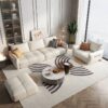 Bắc Âu Đơn Giản Công Nghệ Sofa Vải Kem Phong Cách Phòng Khách Căn Hộ Nhỏ Hàng Thẳng Sofa Đôi Cao Su Vải Nhung Sofa