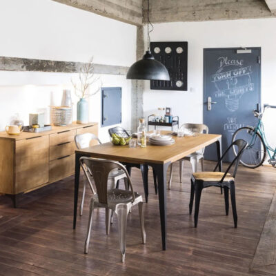 Bắc Âu đơn giản gỗ sồi bàn ăn và ghế kết hợp nhà căn hộ nhỏ bàn ăn sắt rèn phong cách công nghiệp biểu hiện bàn cà phê gỗ nguyên khối
