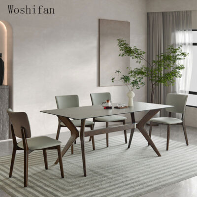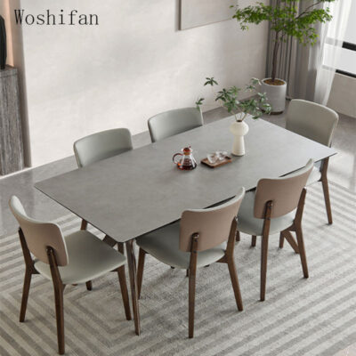 Bắc Âu gỗ đặc phiến đá bàn ăn và ghế hộ gia đình tối giản hiện đại gỗ tần bì màu óc chó mờ bàn ăn gia đình cao cấp