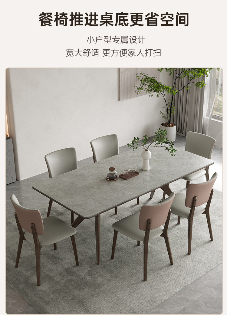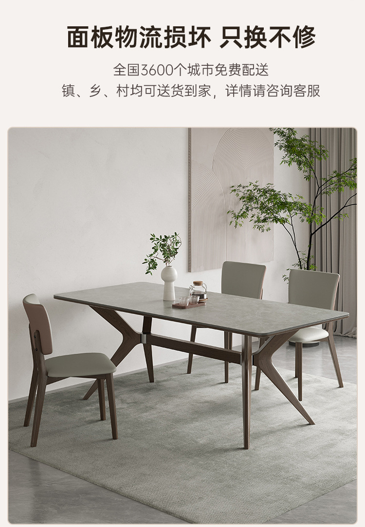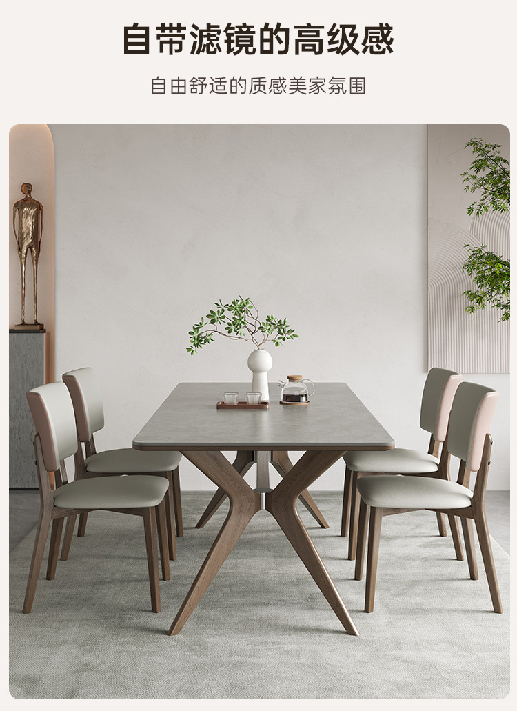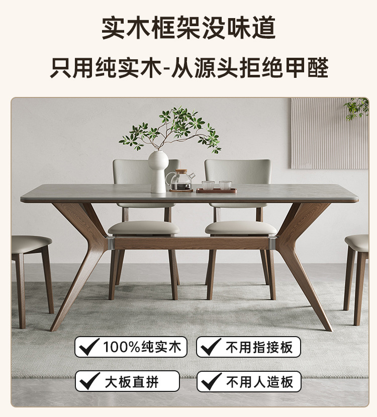 Bắc Âu gỗ đặc phiến đá bàn ăn và ghế hộ gia đình tối giản hiện đại gỗ tần bì màu óc chó mờ bàn ăn gia đình cao cấp