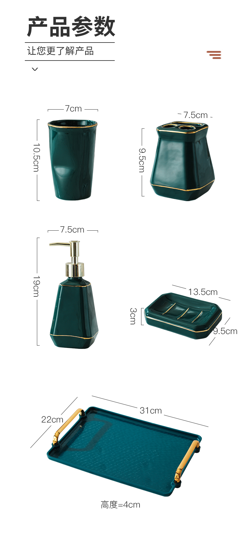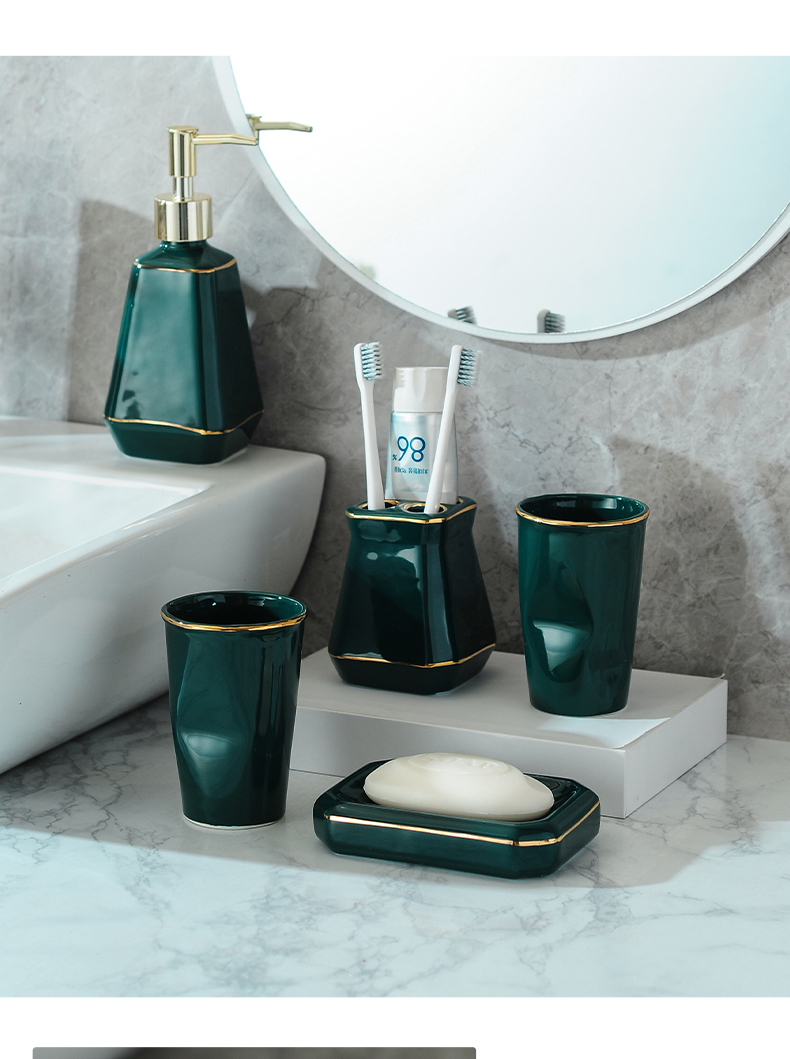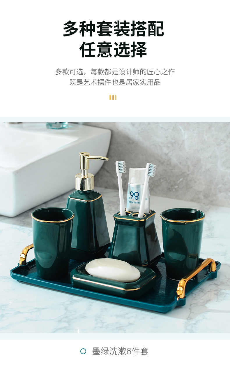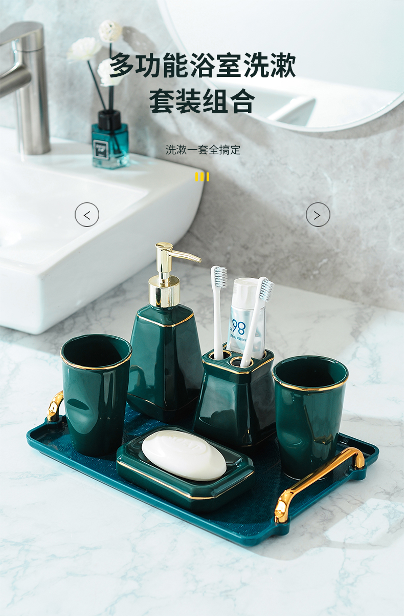 Bắc Âu gốm phòng tắm nhà vệ sinh bộ rửa cung cấp bàn chải đánh răng phòng tắm cốc ánh sáng sang trọng đơn giản khay quà
