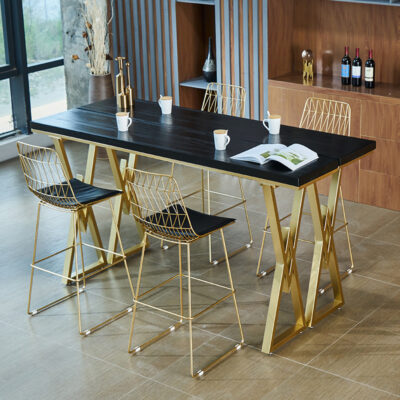 Bắc Âu Ins Lưới Đỏ Thanh Sắt Bộ Bàn Ghế Nhà Cao Bàn Quán Trà Sữa Vách Ngăn Bàn Dài Gỗ Treo Tường Bàn