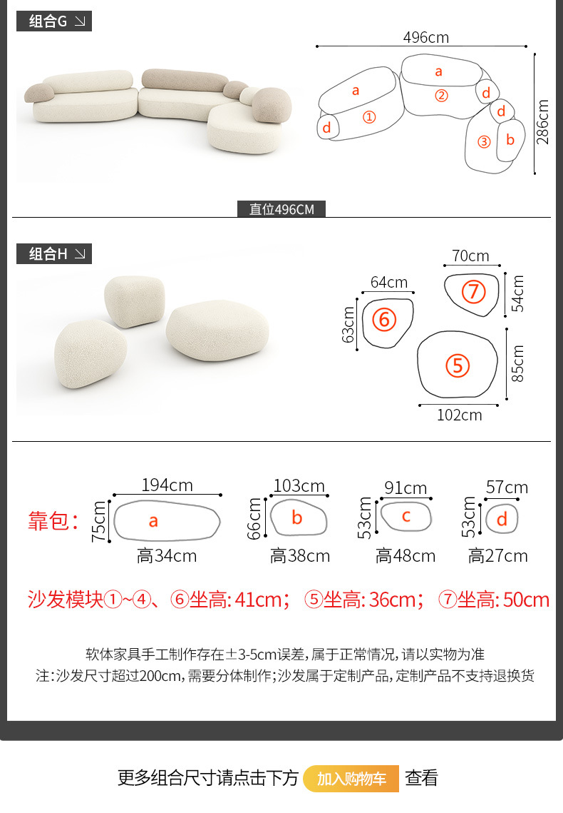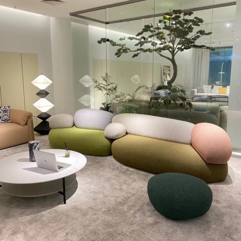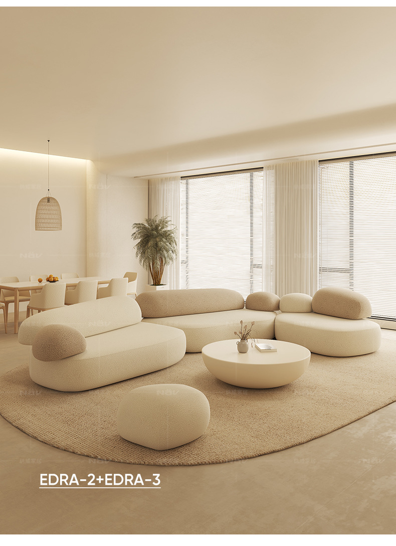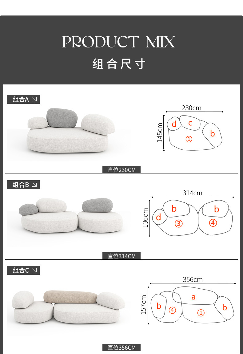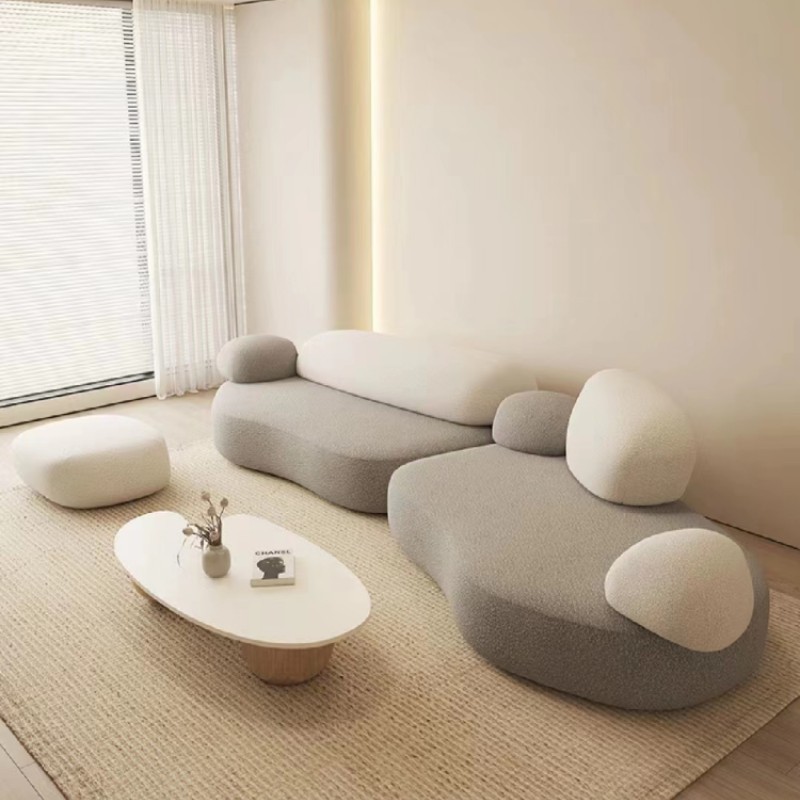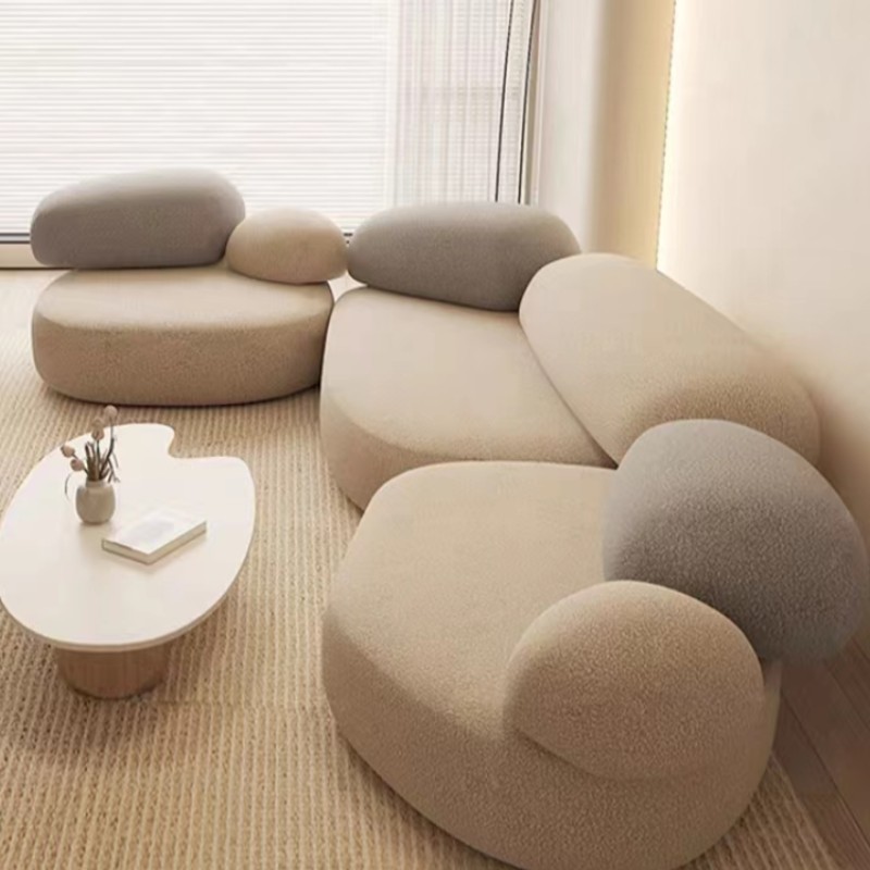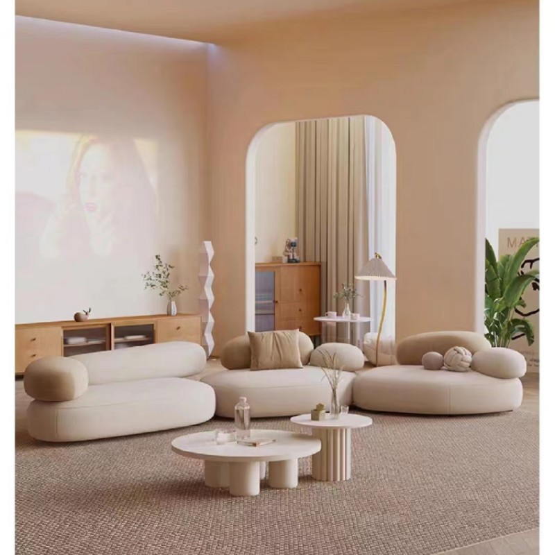 Bắc Âu Kem Sofa Vải Sỏi Hình Internet Người Nổi Tiếng Ins Gió Biệt Thự Nhật Bản Lớn Bằng phẳng Kết Hợp Sofa
