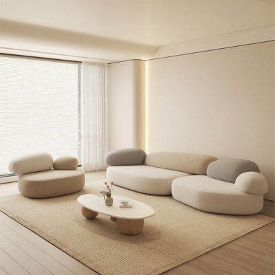 Bắc Âu Kem Sofa Vải Sỏi Hình Internet Người Nổi Tiếng Ins Gió Biệt Thự Nhật Bản Lớn Bằng phẳng Kết Hợp Sofa