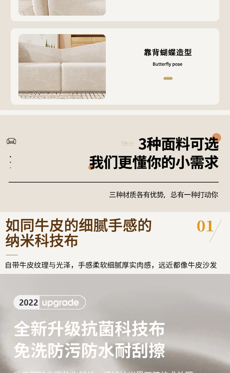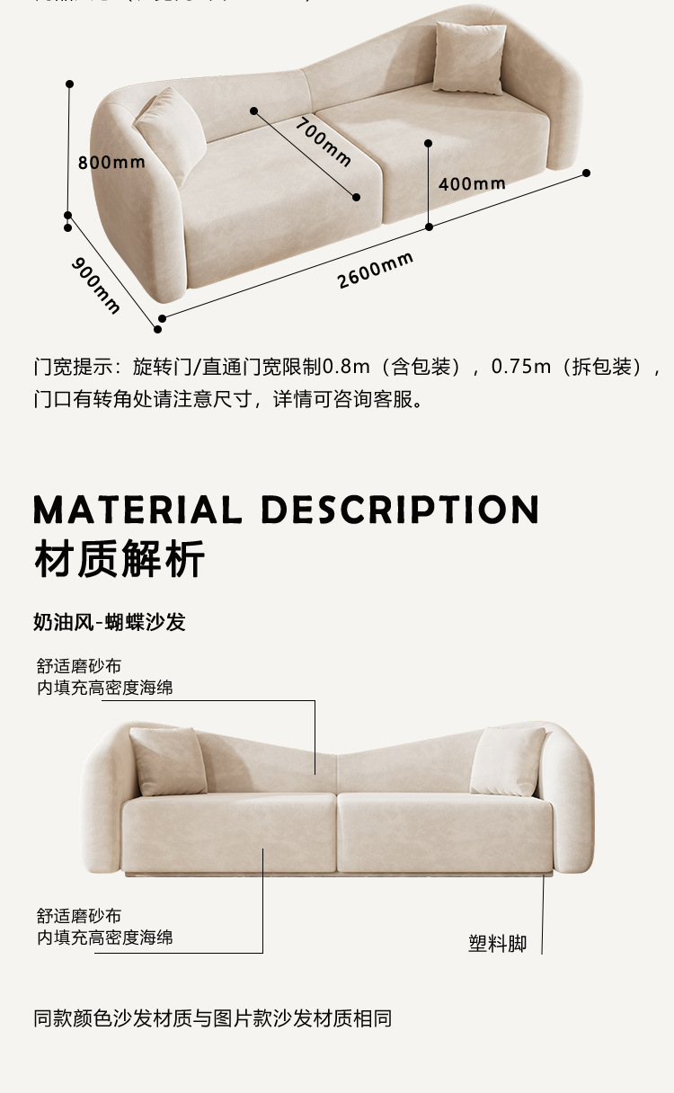 Bắc Âu màu kem phong cách bướm sofa vải tối giản hiện đại lưới màu đỏ tự do không gian sofa phòng khách ba căn hộ nhỏ