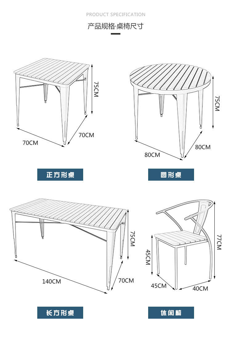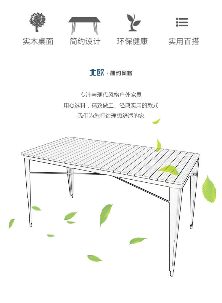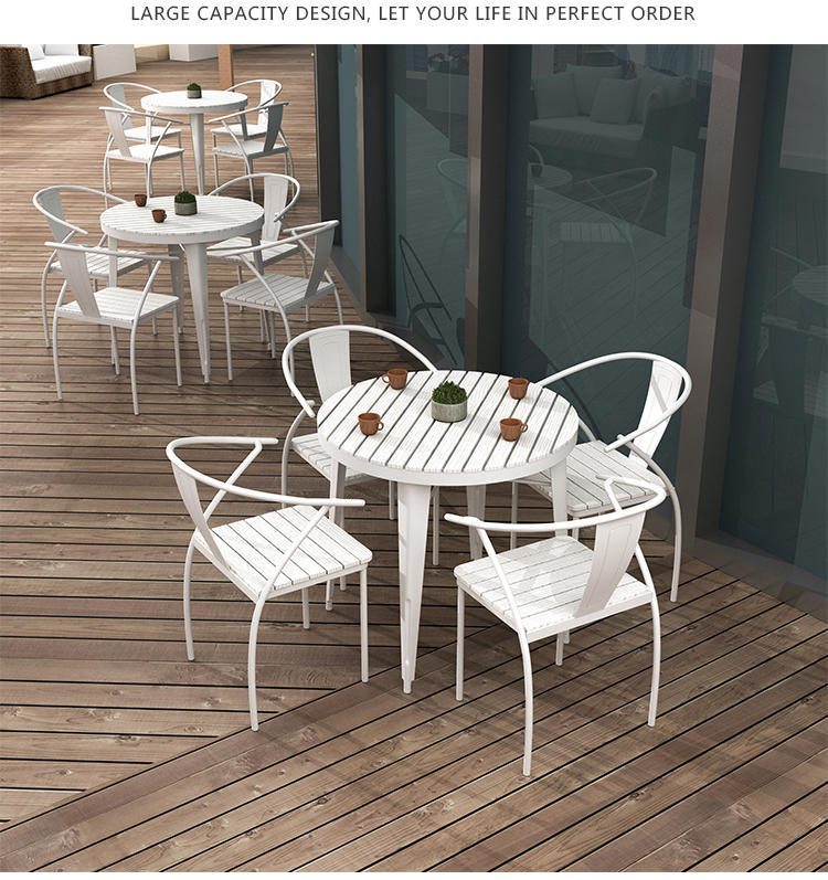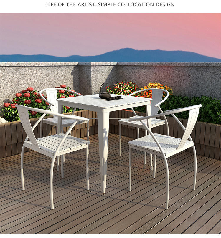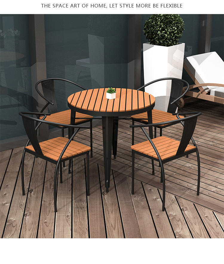 Bắc Âu ngoài trời sân thượng bàn ghế sân vườn sân ban công mái tròn thép nhựa gỗ bàn ghế bàn được thiết kế để tạo điểm nhấn cho khu vực sân vườn, ban công hoặc không gian ngoài trời.