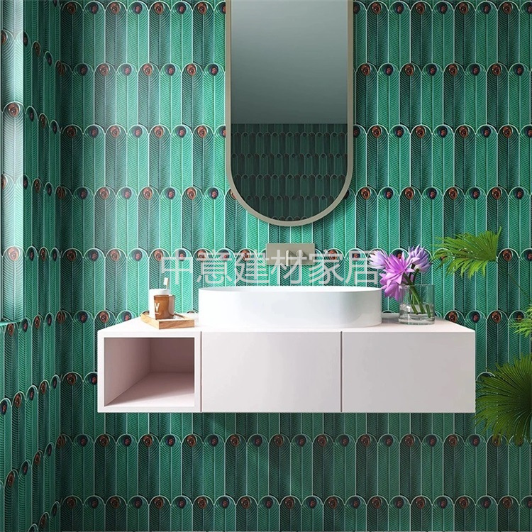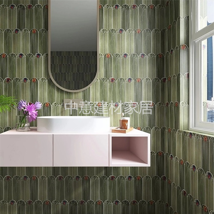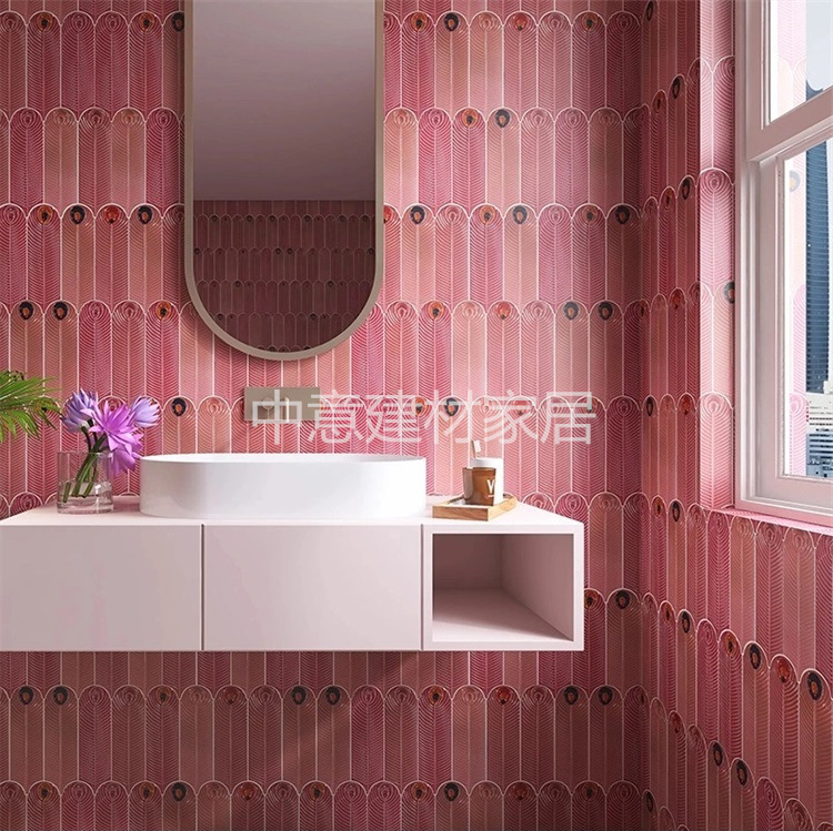 Bắc Âu Phật Sơn Lông Công Lưới Ngói Đỏ Hồng Gạch Thủ Công Nhà Bếp Phòng Tắm Ngói Phòng Tắm Nền Tường Gạch