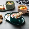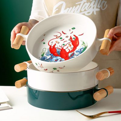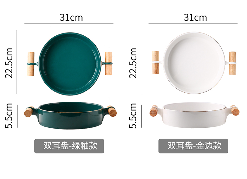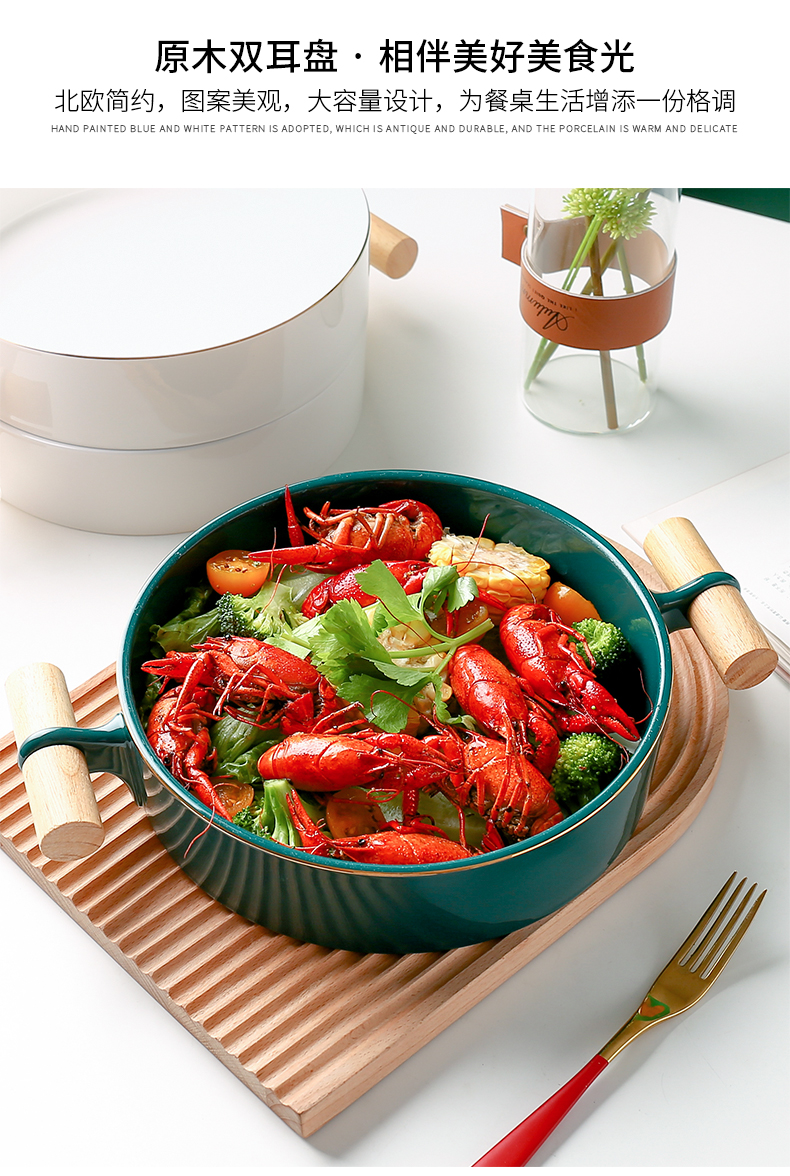Bắc Âu Sáng tạo gốm sứ Binaural Đĩa trái cây Tôm càng xanh Nồi súp Bát đĩa Salad Bát trái cây sấy khô Đĩa canh tại nhà Đĩa sâu.