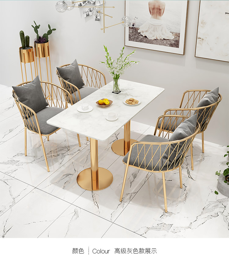 Bắc Âu sang trọng ghế sofa sắt rèn Internet nổi tiếng quán cà phê bàn ghế kết hợp nhà máy bán hàng trực tiếp nhà hàng bàn đá cẩm thạch