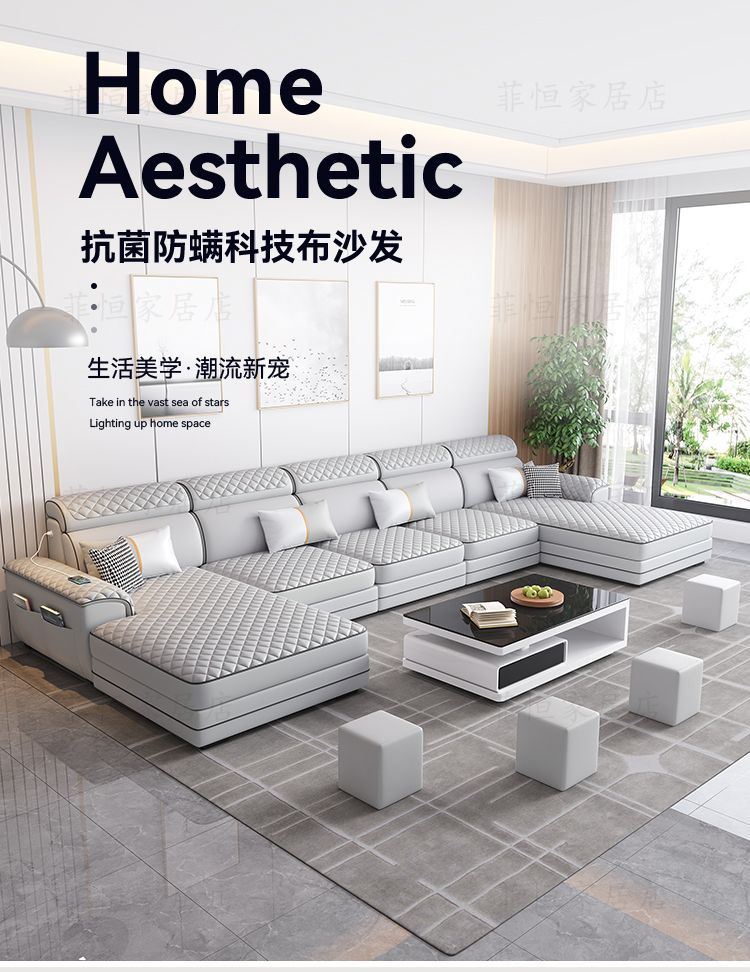 Bắc Âu sofa vải phòng khách tối giản hiện đại đẹp sang trọng công nghệ vải ghế dài kích thước sofa căn hộ kết hợp lưới mô hình màu đỏ