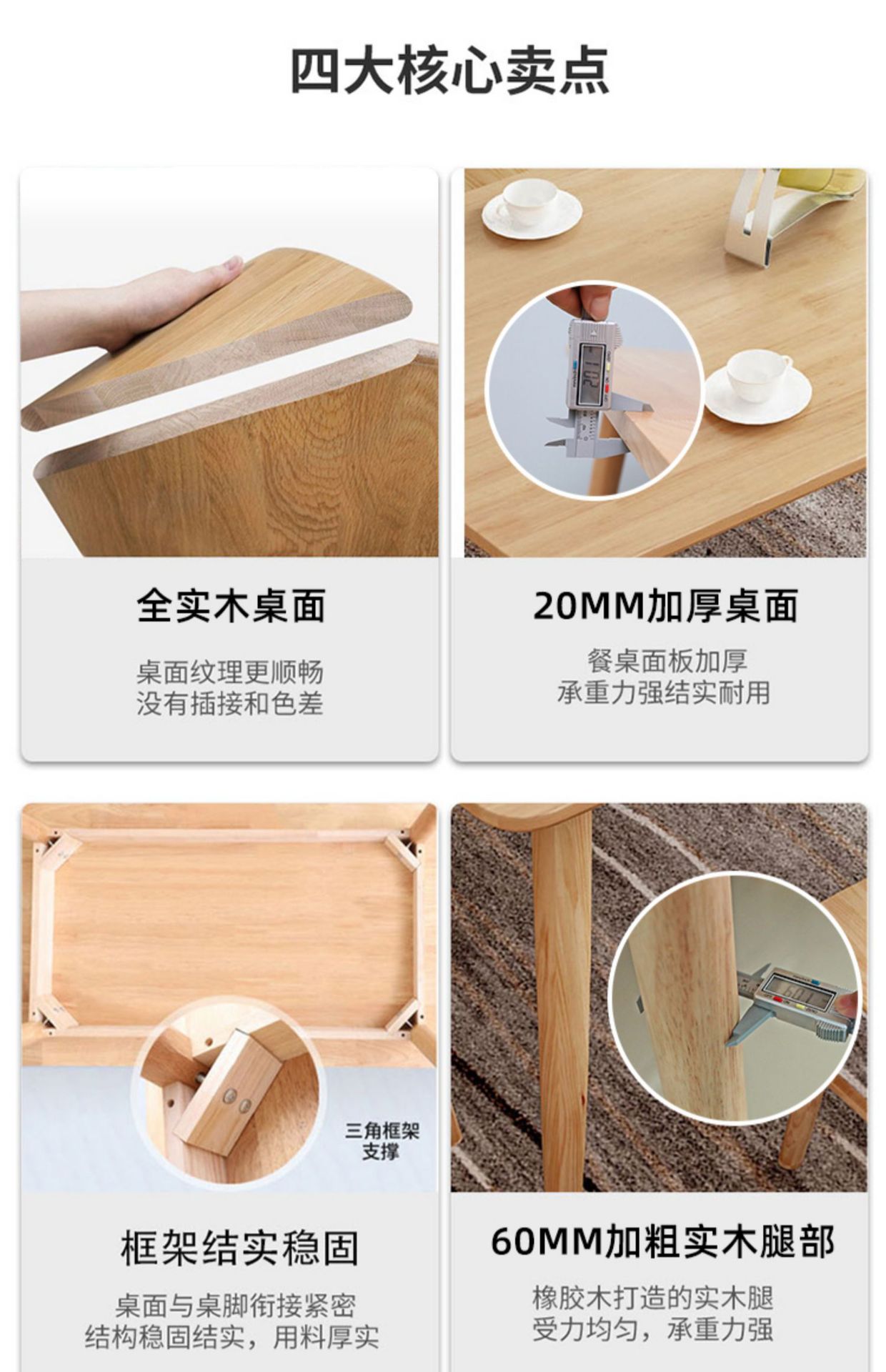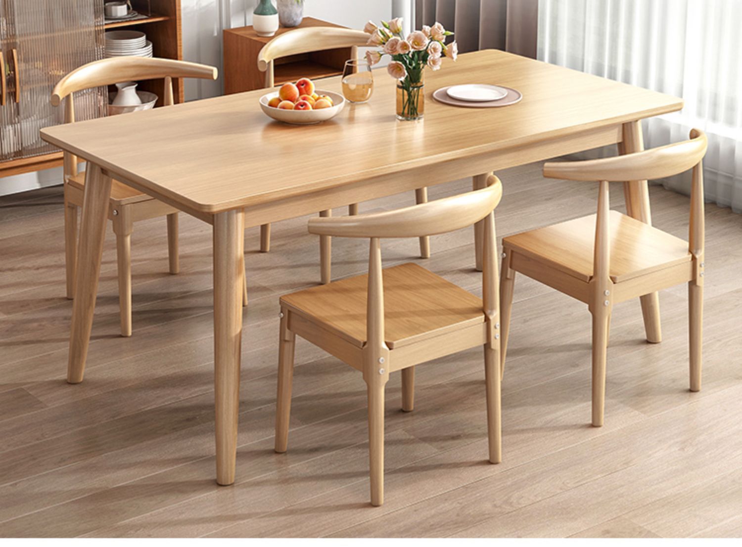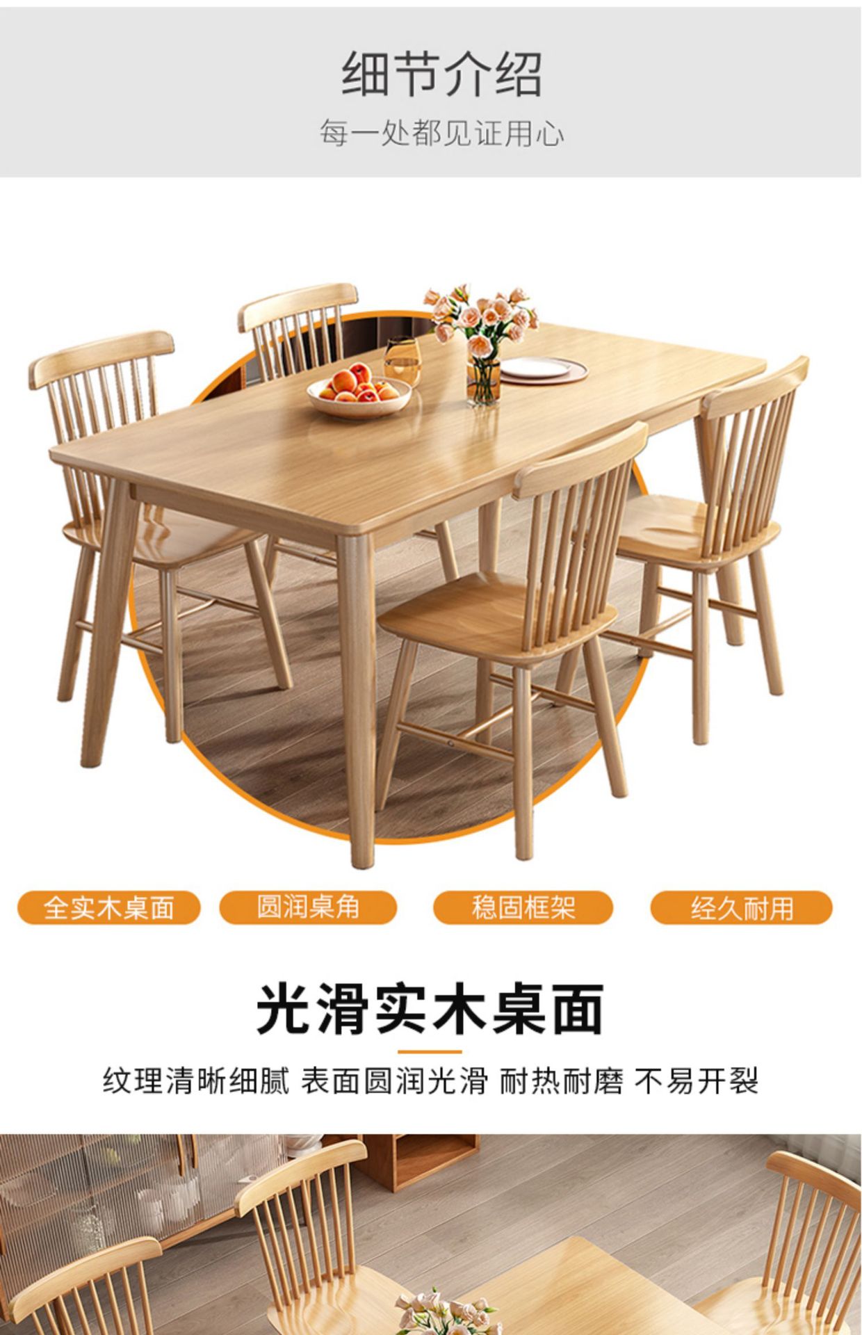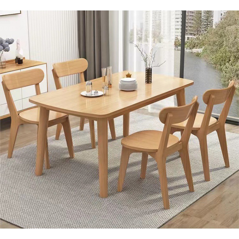 Bắc Âu tất cả bằng gỗ nguyên khối bàn ăn gia đình bàn ghế gỗ sồi một bàn và bốn ghế kết hợp khách sạn cafe nhẹ sang trọng một bàn và 4 ghế