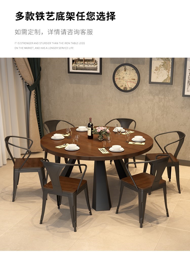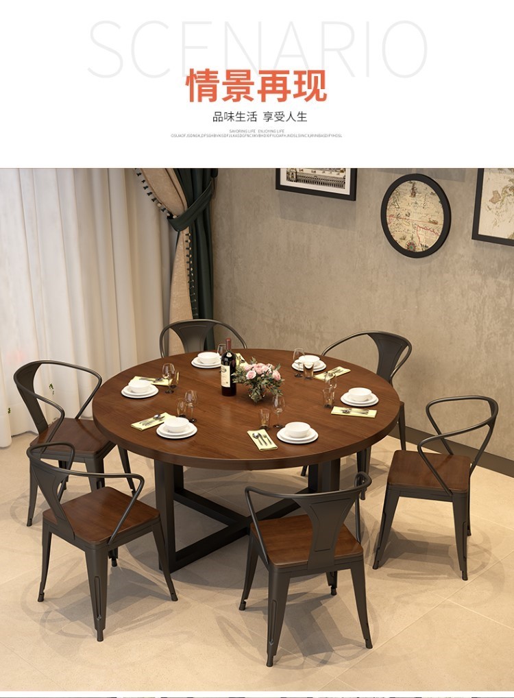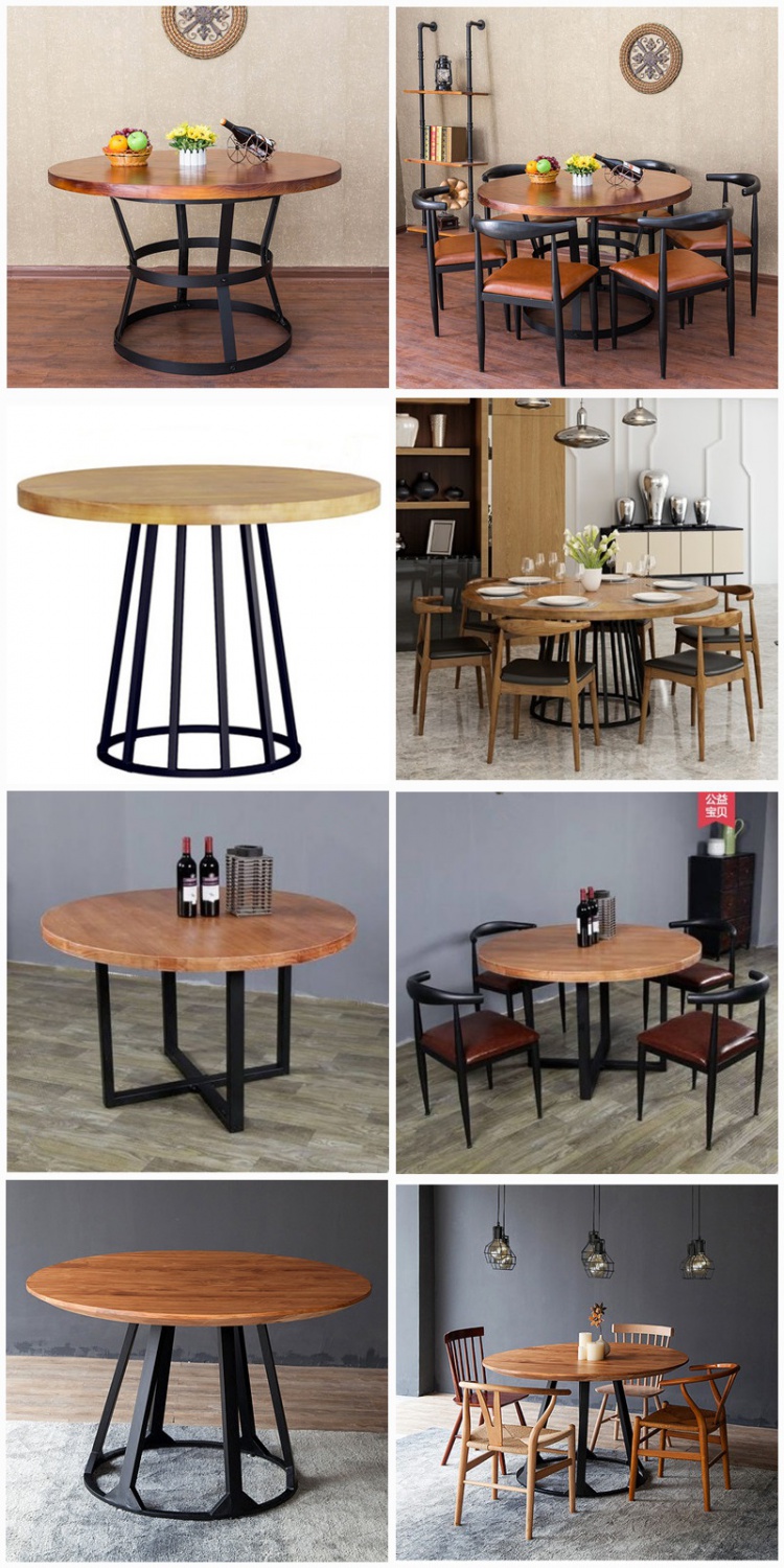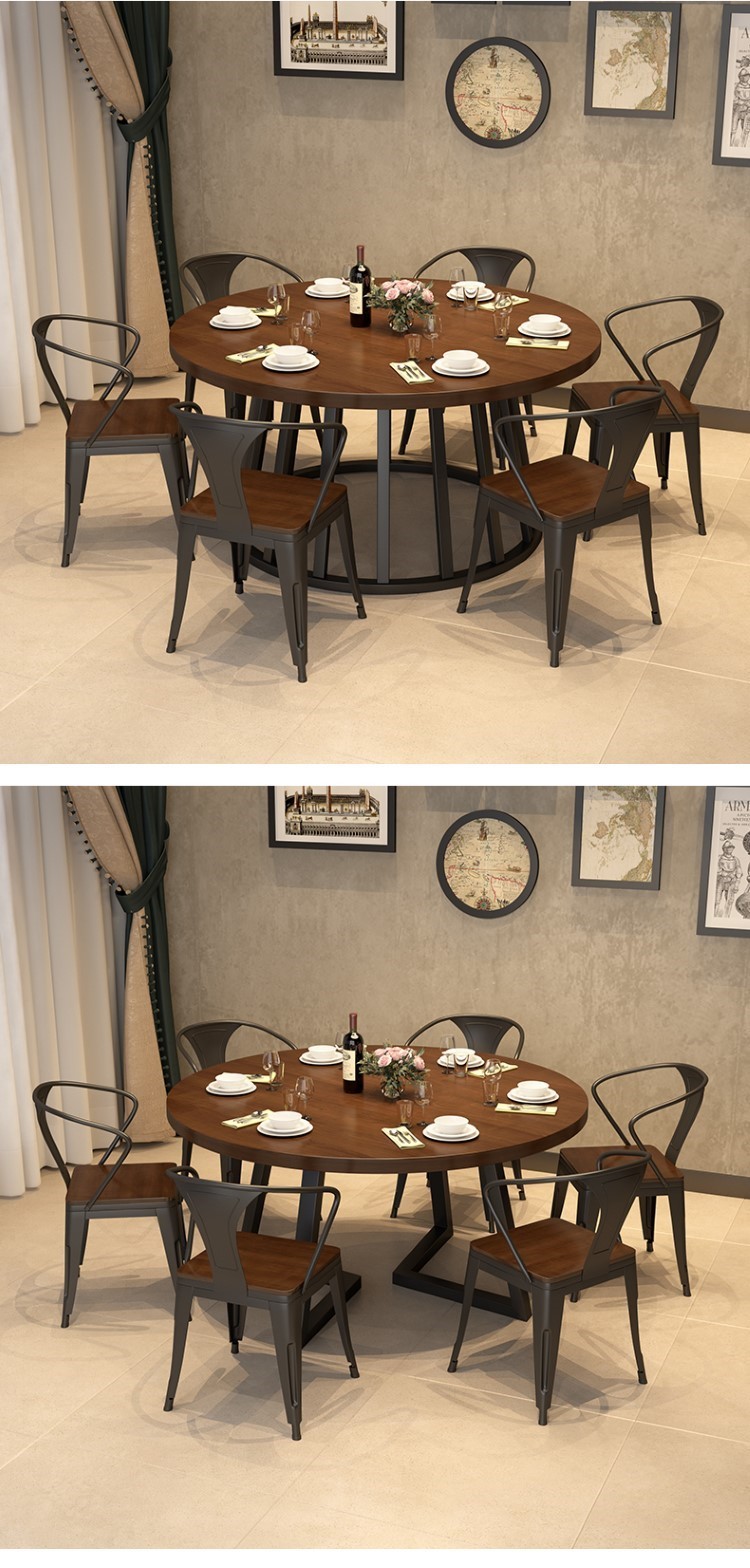 Bắc Âu Thanh Bàn Tròn Gỗ Chắc Chắn Phong Cách Công Nghiệp Nhà Hàng Nhà Hàng Bàn Ăn Tròn Sắt Cũ Retro Bàn Cà Phê Bàn Tròn