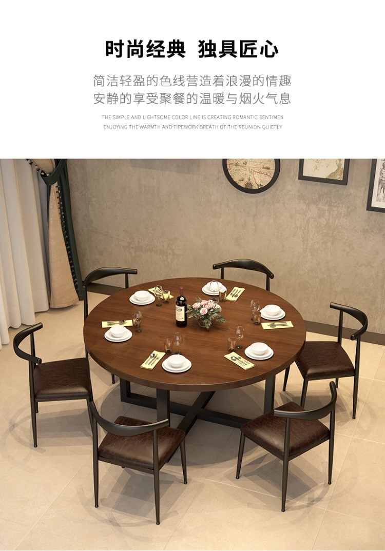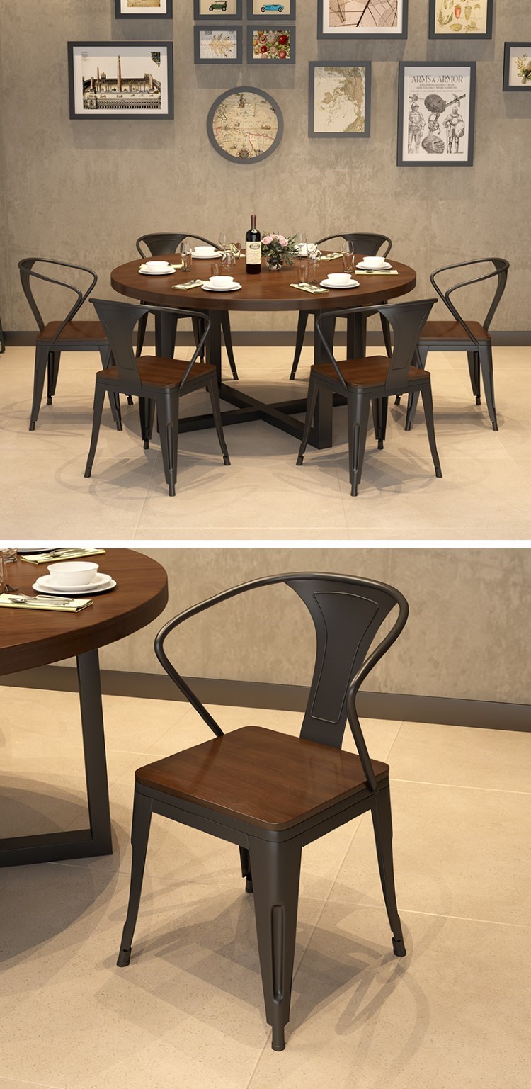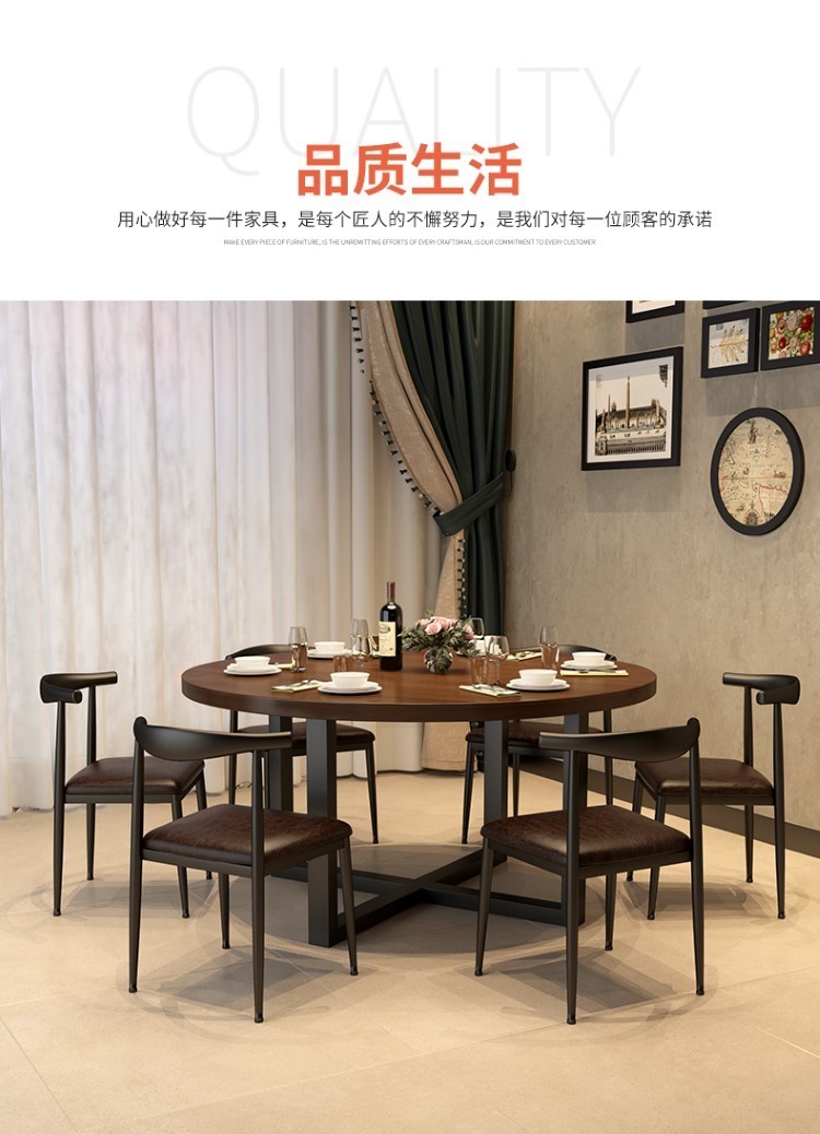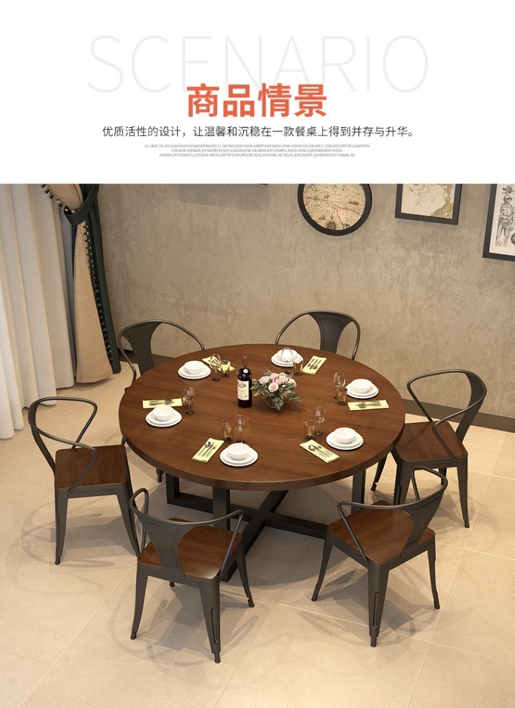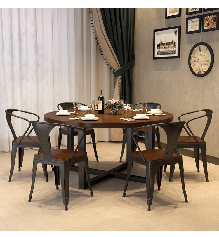 Bắc Âu Thanh Bàn Tròn Gỗ Chắc Chắn Phong Cách Công Nghiệp Nhà Hàng Nhà Hàng Bàn Ăn Tròn Sắt Cũ Retro Bàn Cà Phê Bàn Tròn