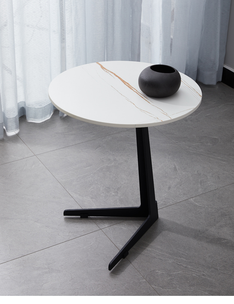 Bắc Âu tối giản thép carbon bàn cà phê chân đá cẩm thạch góc bàn đá tấm bảng bên cạnh kim loại bàn cà phê tròn khung đế tùy chỉnh