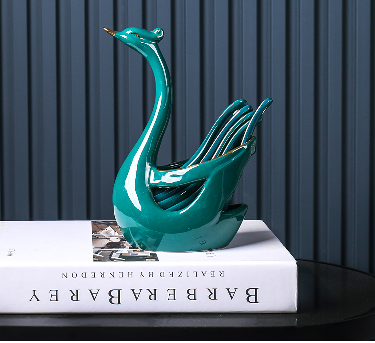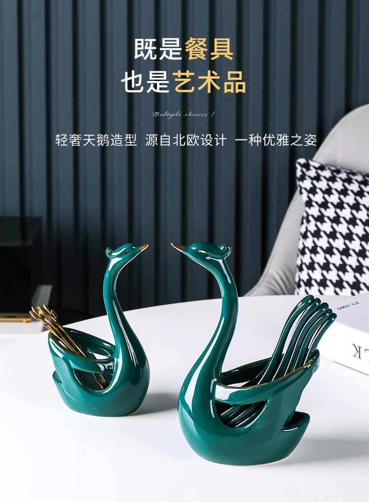 Bắc Âu trái cây nĩa lưu trữ lọ thiết lập nhà trang trí thiên nga sáng tạo quán cà phê cửa hàng cà phê gốm sứ ký hiệu trái cây lọ lưu trữ Lọ nĩa hoa quả thiên nga thanh lịch, nĩa đựng nĩa và thìa trang trí nhà bếp