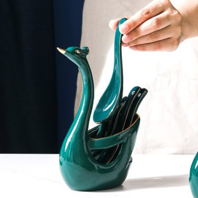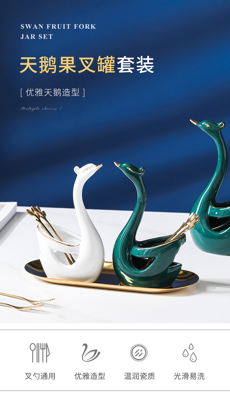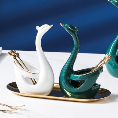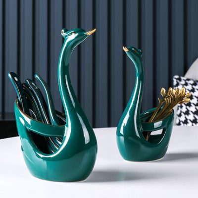 Bắc Âu trái cây nĩa lưu trữ lọ thiết lập nhà trang trí thiên nga sáng tạo quán cà phê cửa hàng cà phê gốm sứ ký hiệu trái cây lọ lưu trữ Lọ nĩa hoa quả thiên nga thanh lịch, nĩa đựng nĩa và thìa trang trí nhà bếp.